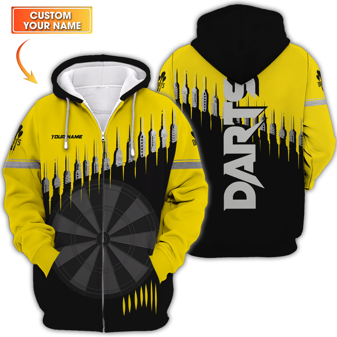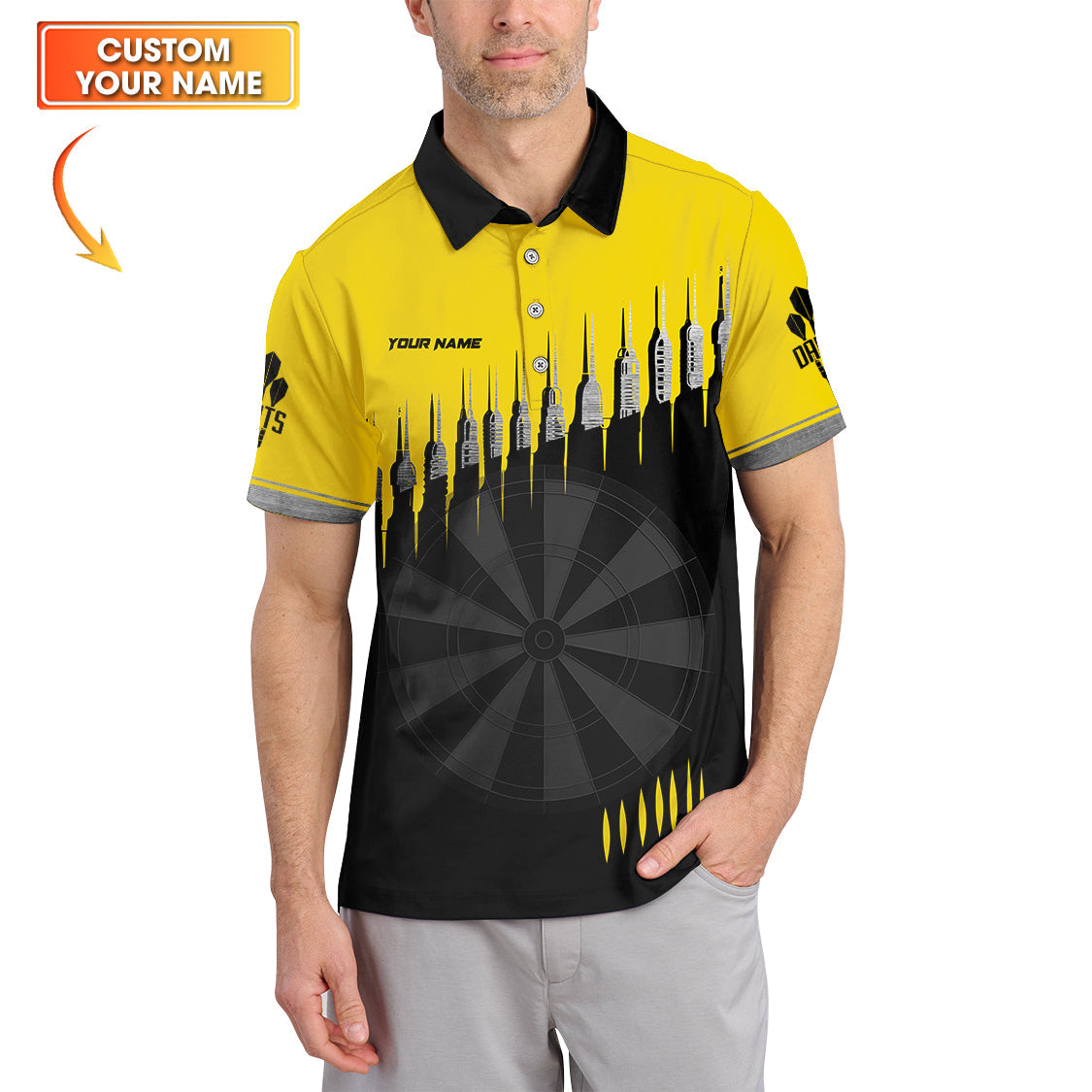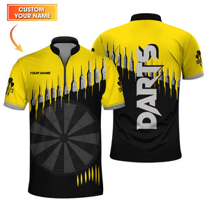 Custom Name Dart Jersey for Players, Yellow Darts Polo Shirt, Cool Dartboard Gift for Men
