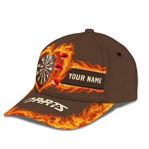 Custom Name Darts Cap, Flaming Heart Dartboard Hat, Gift For Darts Players