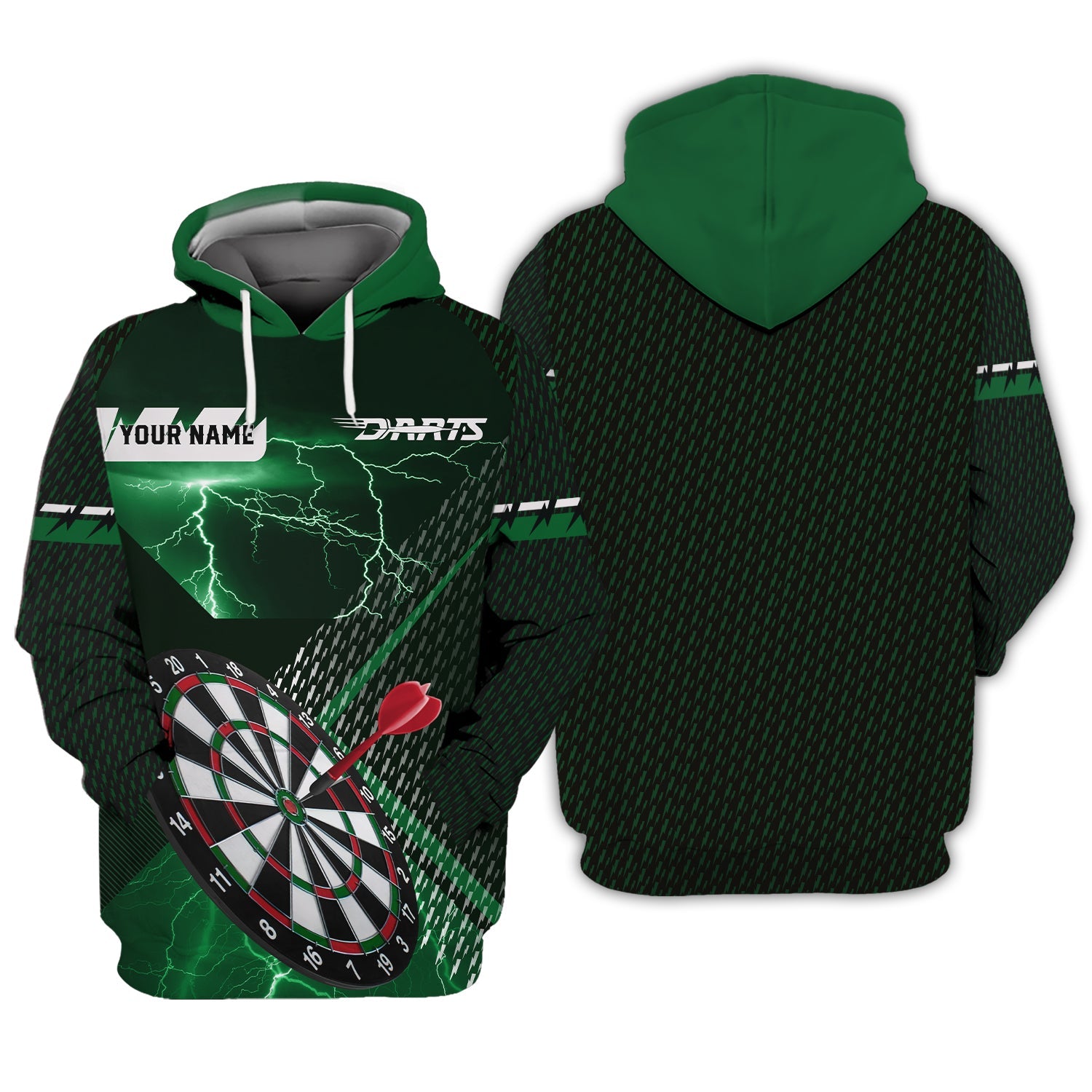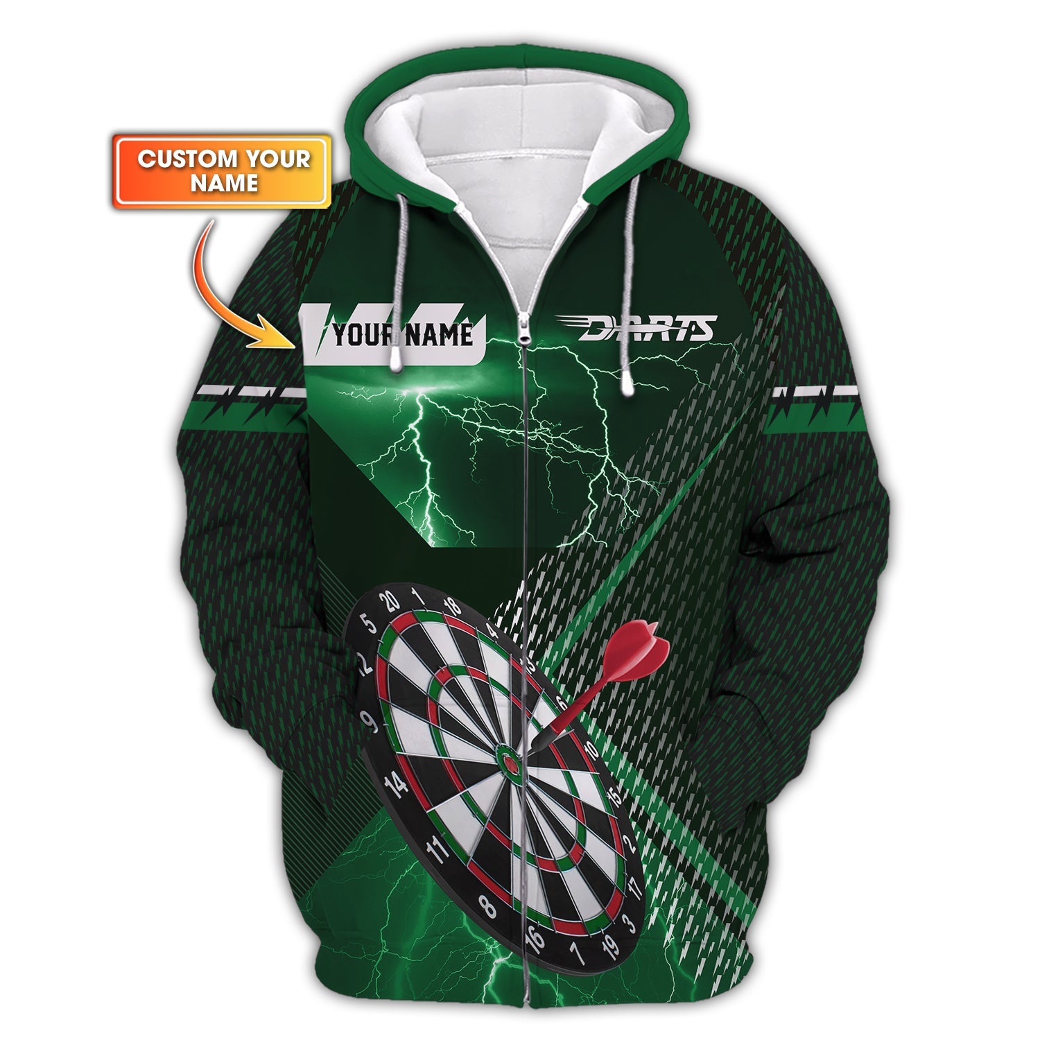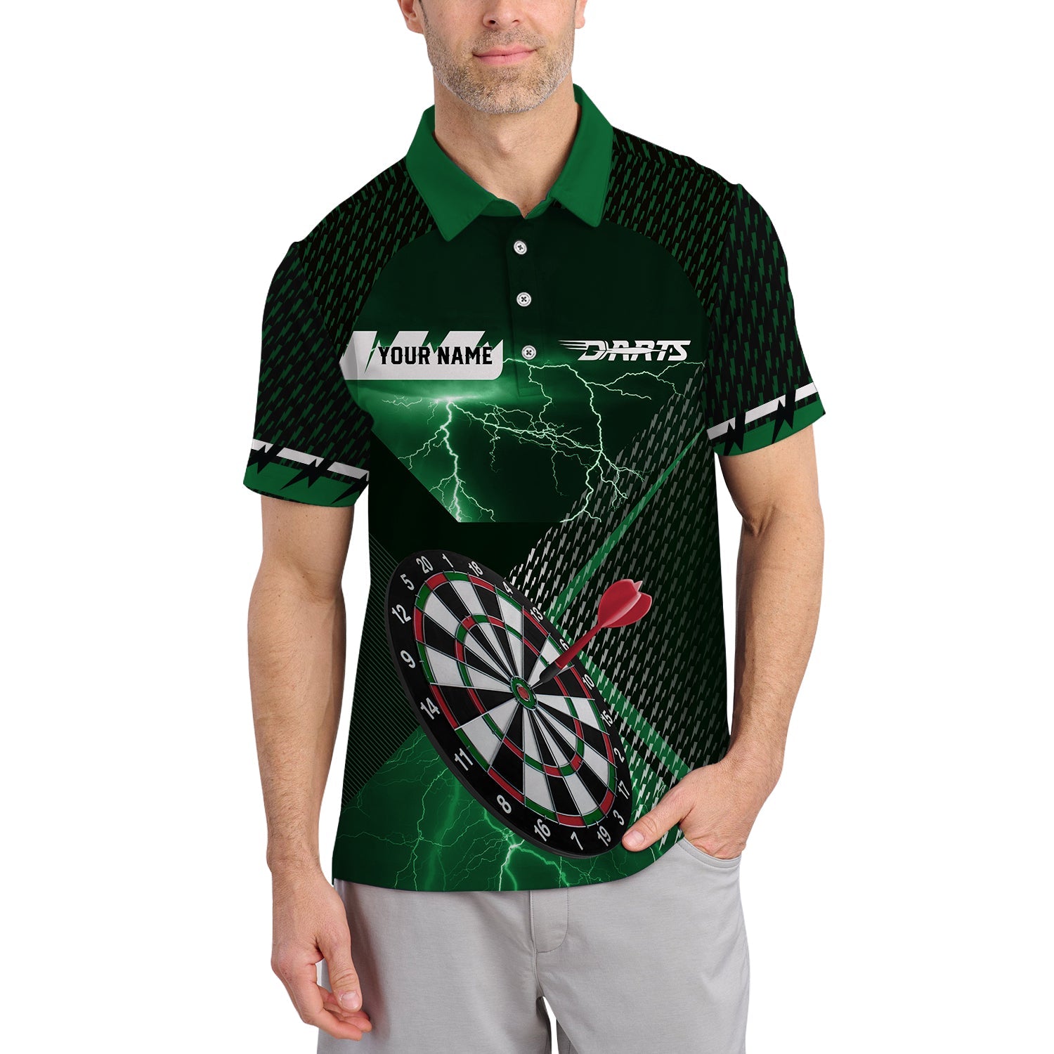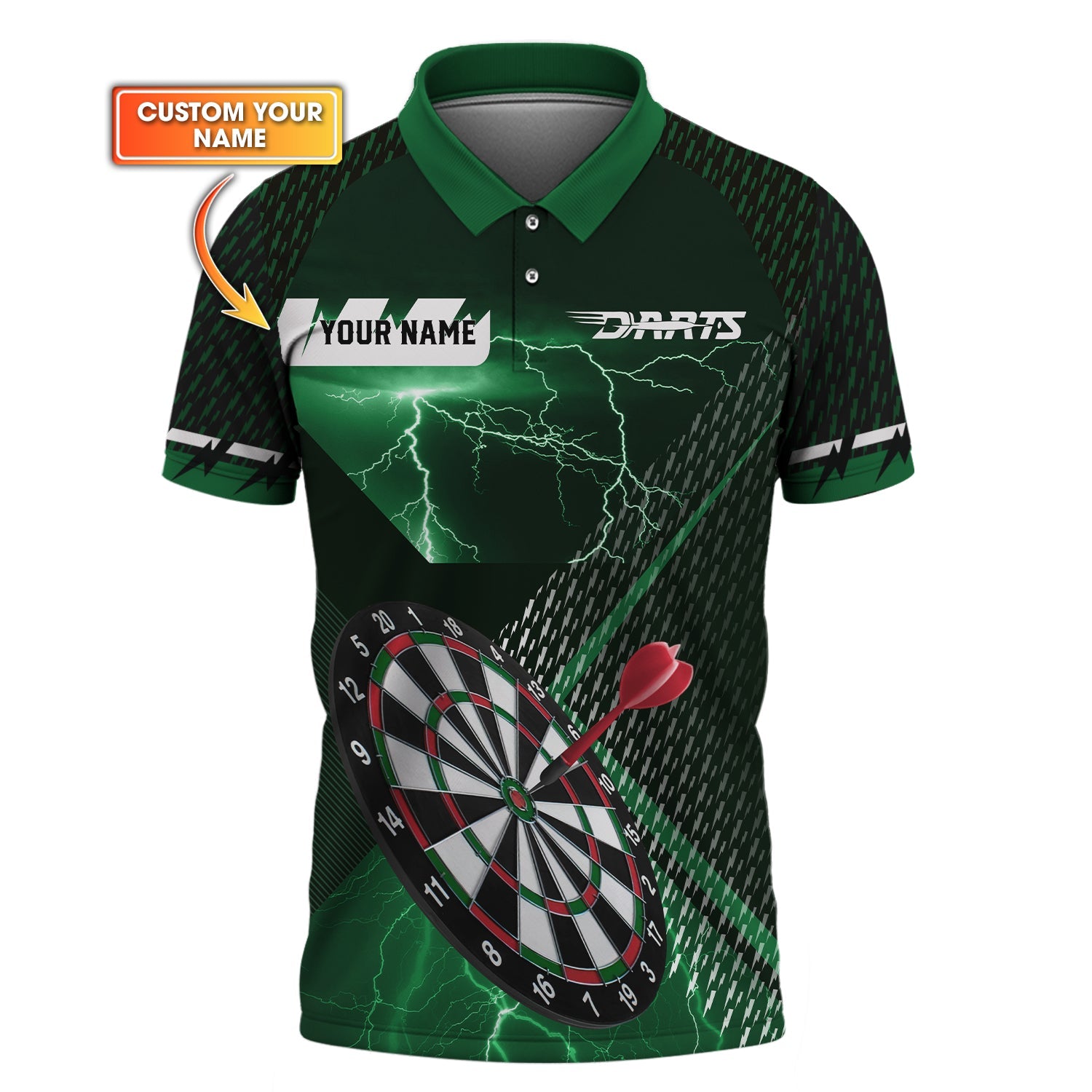 Custom Name Darts Jersey, Green Lightning Dart Shirt, Gift For Darts Lover