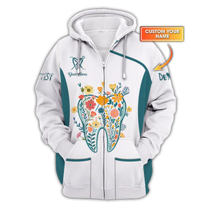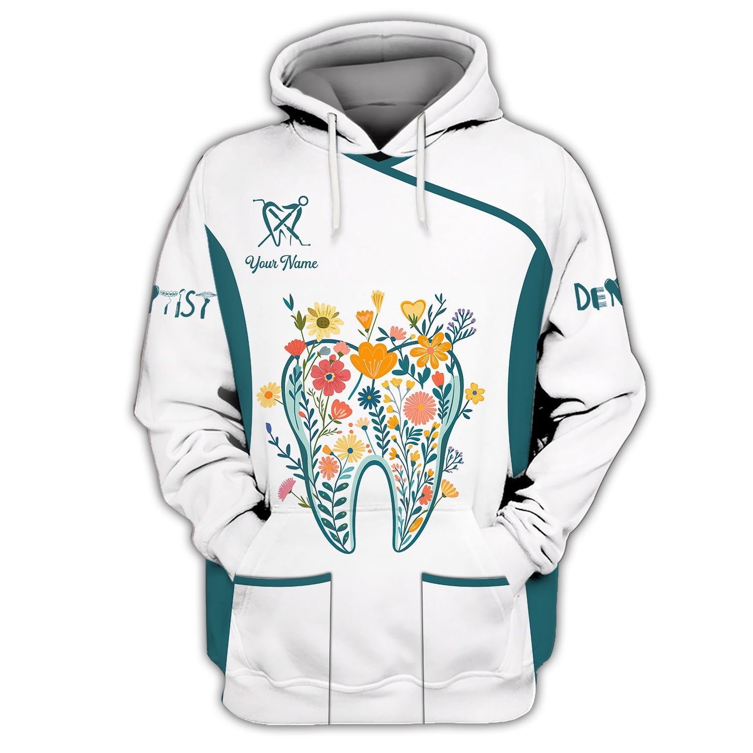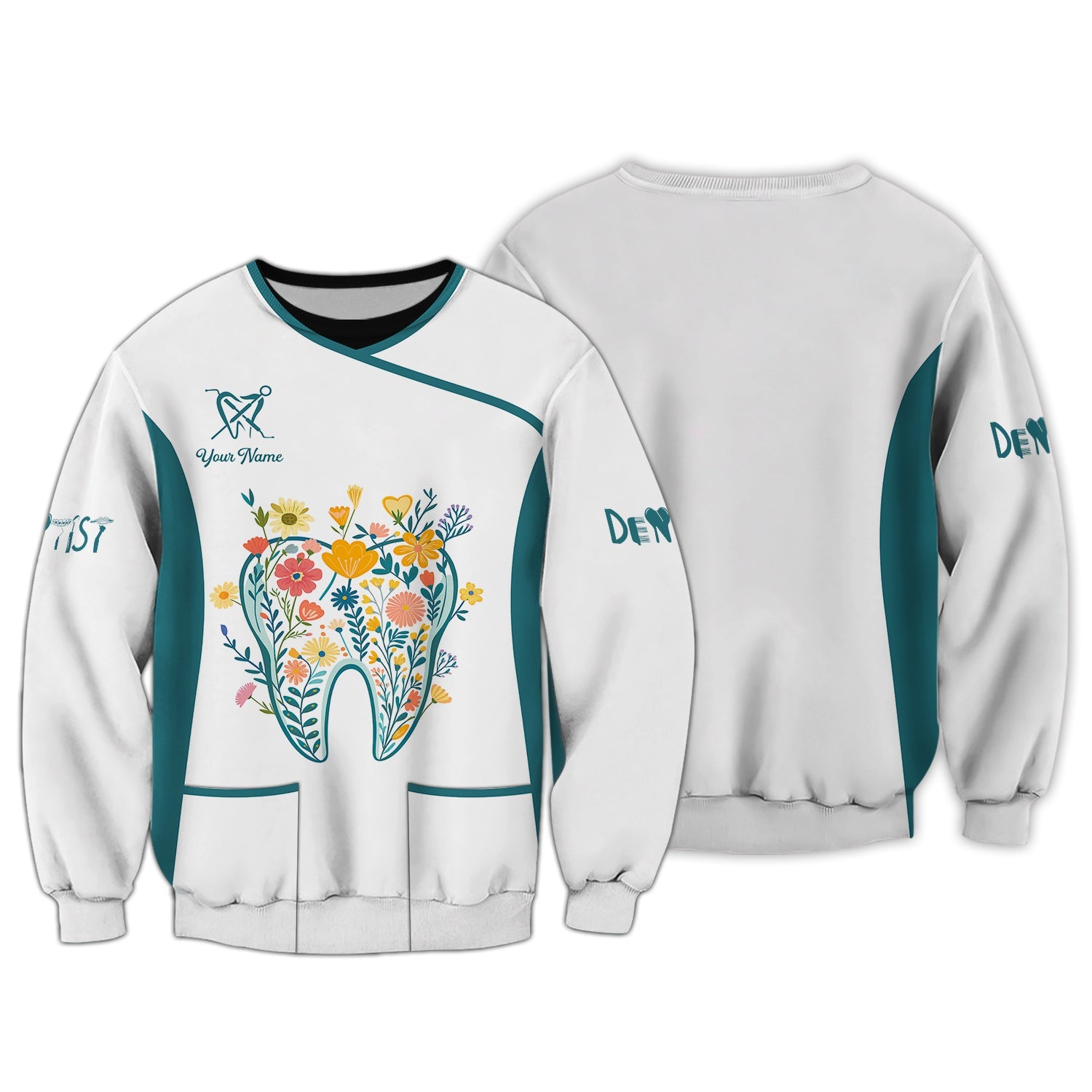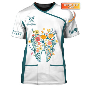 Custom Name Dental Uniform, Floral Tooth Shirt for Dentists, Personalized Dentals Shirts