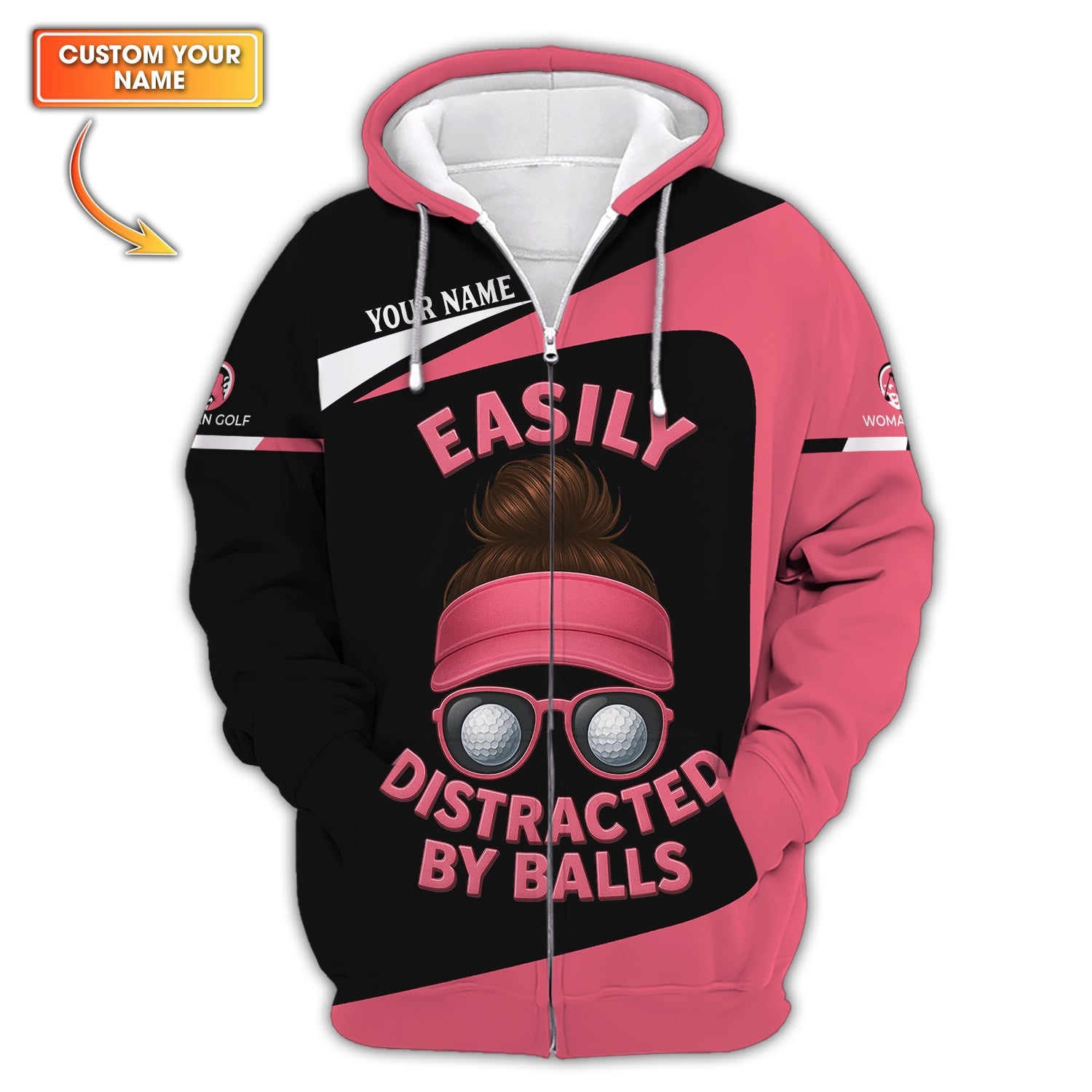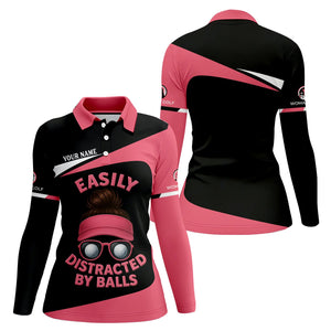 Custom Name Easily Distracted By Balls Polos For Women's, Golf Shirt For Golfer, Funny Golf Shirts