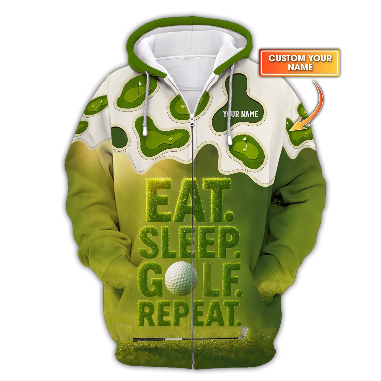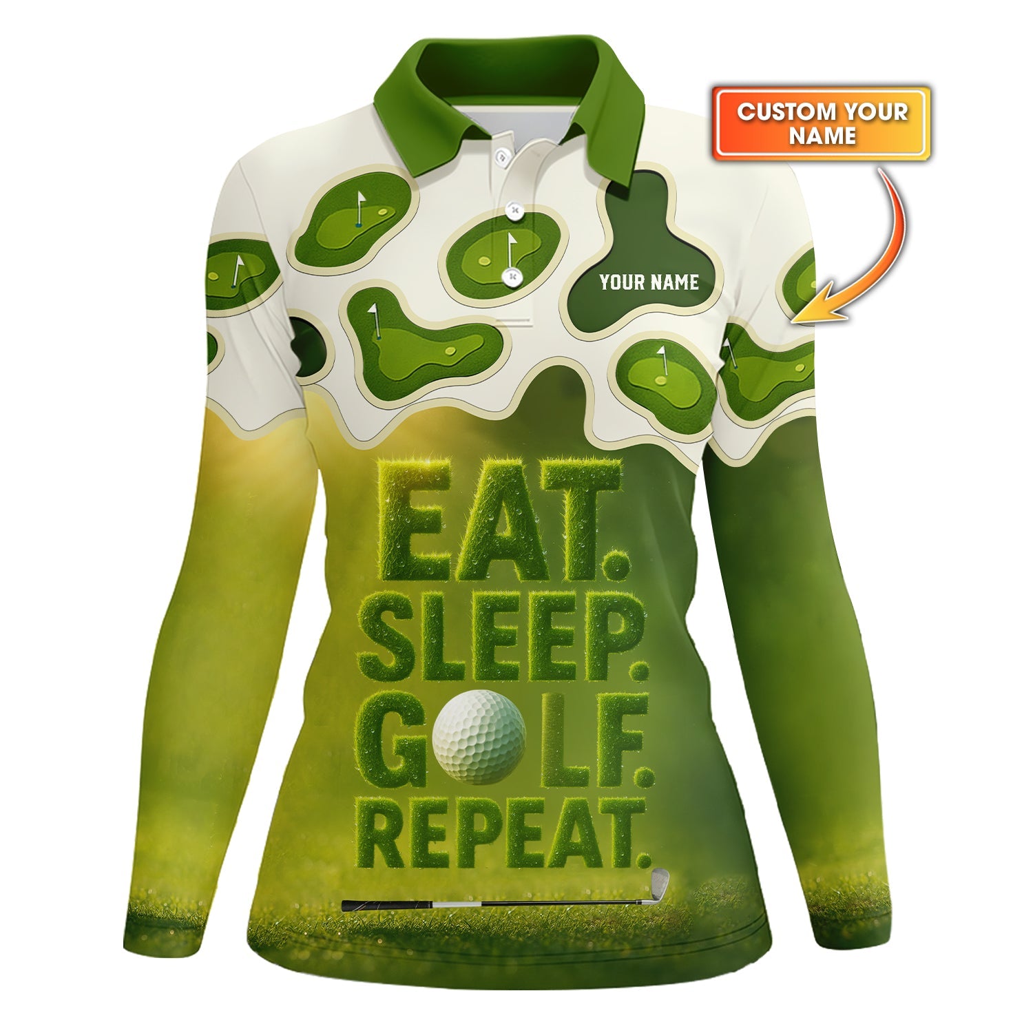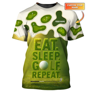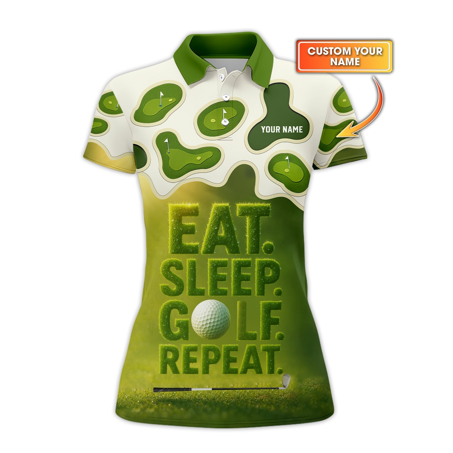 Custom Name Eat Sleep Golf Repeat Polos, Funny Golf Shirt, Golf Gift For Men
