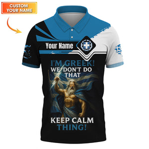 Custom Name Greek T-Shirt, I'm Greek! We Don’t Do That Keep Calm Thing! , Personalized God of Greek Shirt