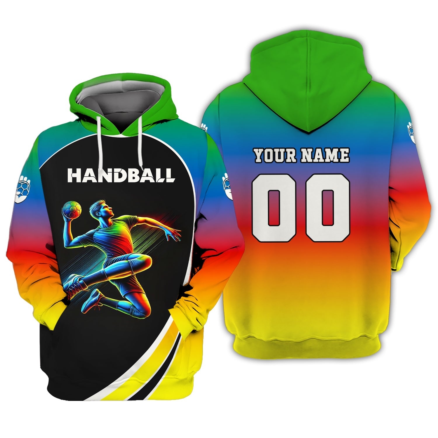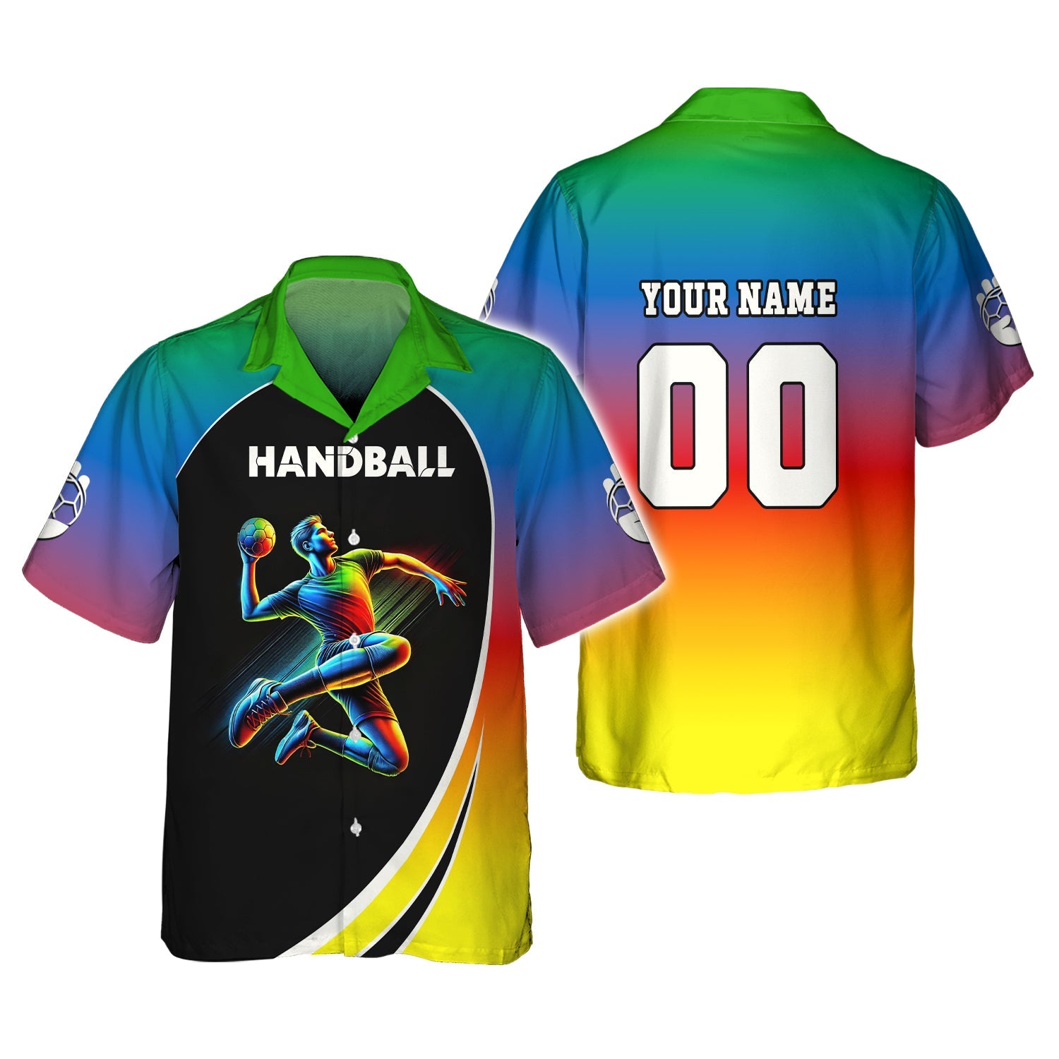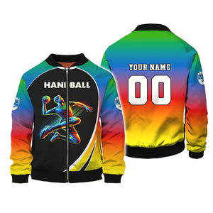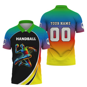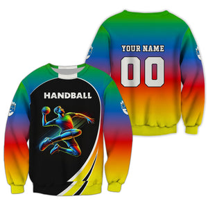 Custom Name & Number Handball Player Multicolor T-Shirt 3D Design, Handball Shirt, Lightweight Sportswear, Gift For Sports Fan