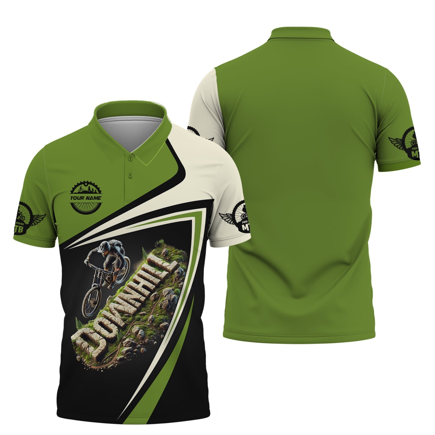 Custom Name Mountain Bike 3D T-Shirt Downhill, Mountain Bike Polo Shirt, Lightweight Sportswear, Personalized MTB Apparel, Gift for Cyclists