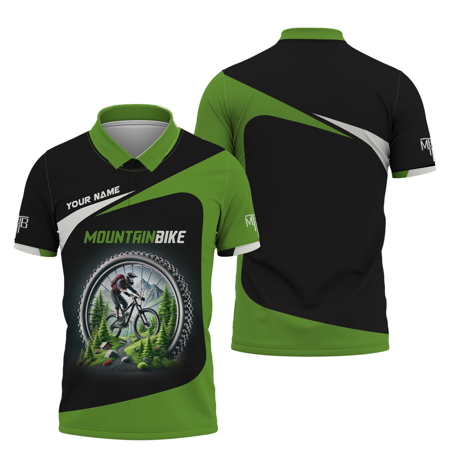 Custom Name Mountain Bike 3D T-Shirt, MTB Polo Shirt, Lightweight Sportswear, Personalized MTB Apparel, Gift for Cyclists