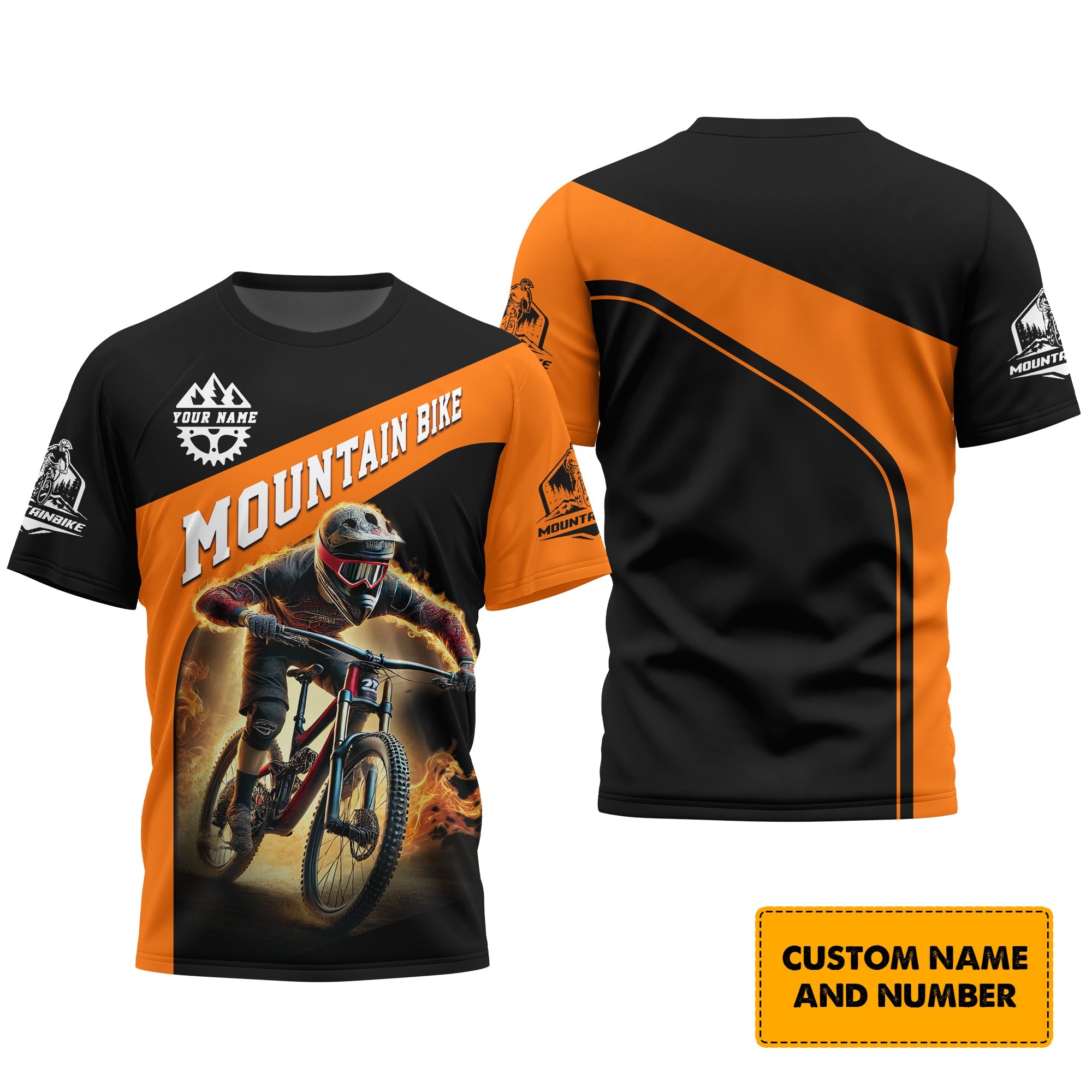 Custom Name Mountain Bike 3D T-Shirt, MTB Polo Shirt, Personalized MTB Apparel, Gift for Cyclists
