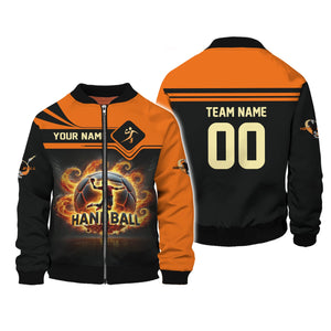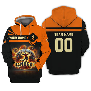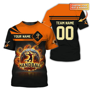 Custom Name & Number Handball Player T-Shirt 3D Fireball, Handball Shirt, Lightweight Sportswear, Gift For Sports Fan