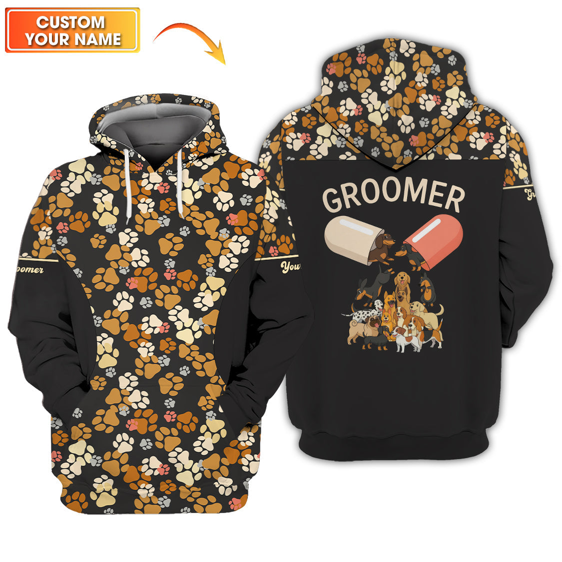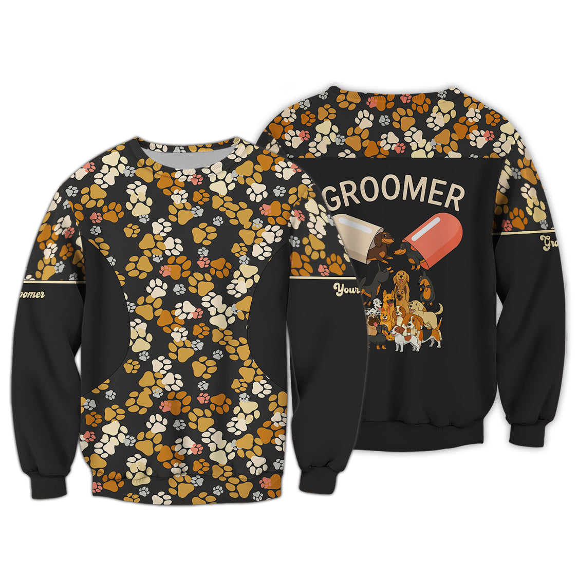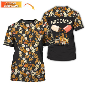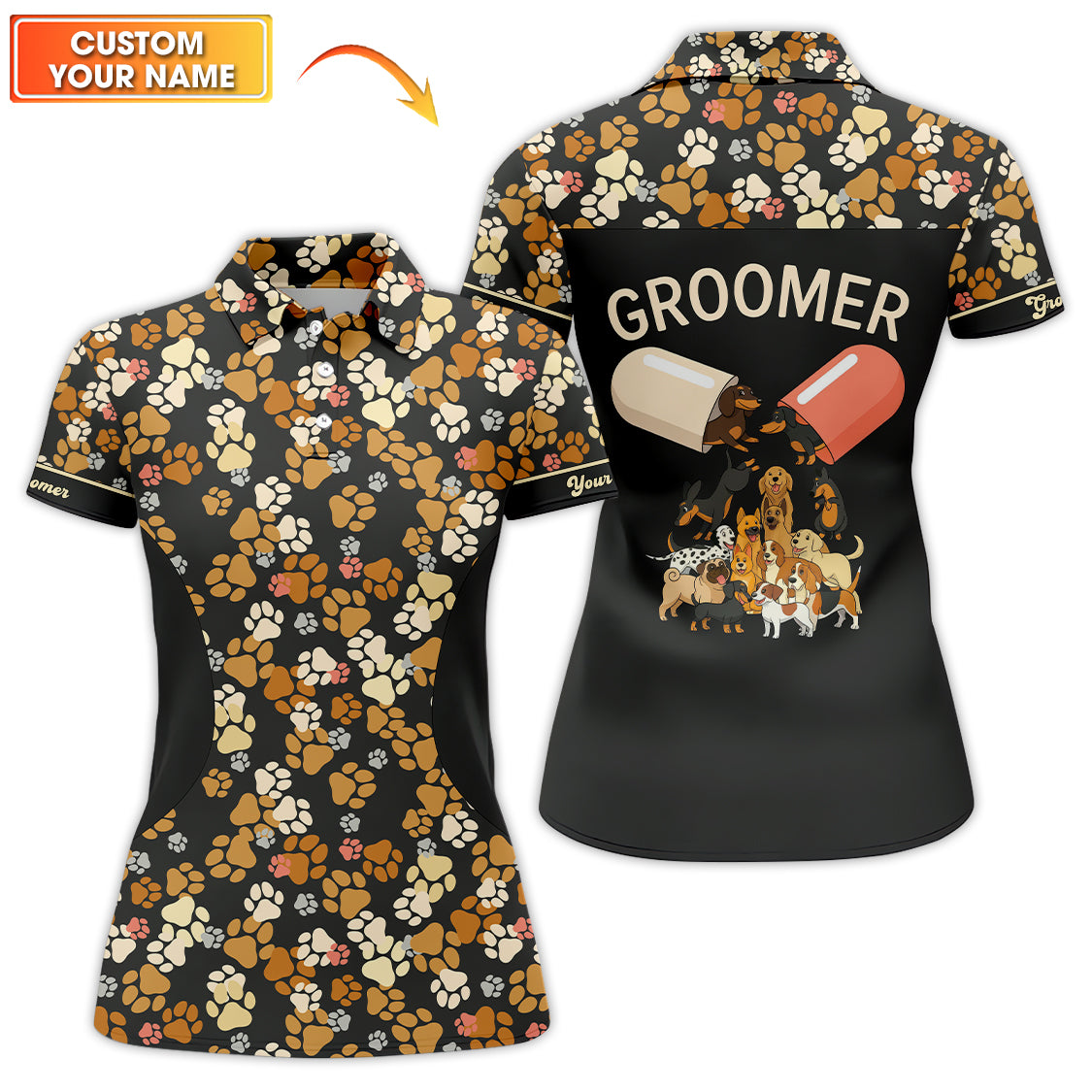 Custom Name Paw Pattern Shirts, Dog Groomer Shirt, Grooming Uniform For Pet Salon