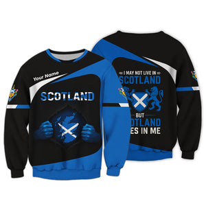 Custom Name Scotland Shirt, I May Not Live In Scotland But Scotland Lives In Me Shirt, Personalized Scottish Shirt For Scottland Lover