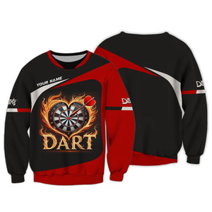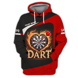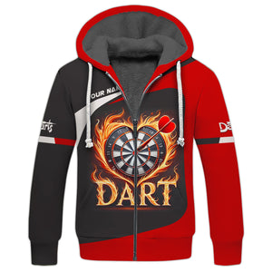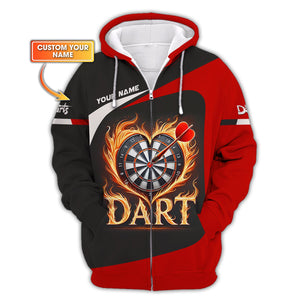 Custom Name With Fire Darts Zipper Hoodie, Personalized Darts Shirts, Dart Team Shirts, Gift For Darts Lovers