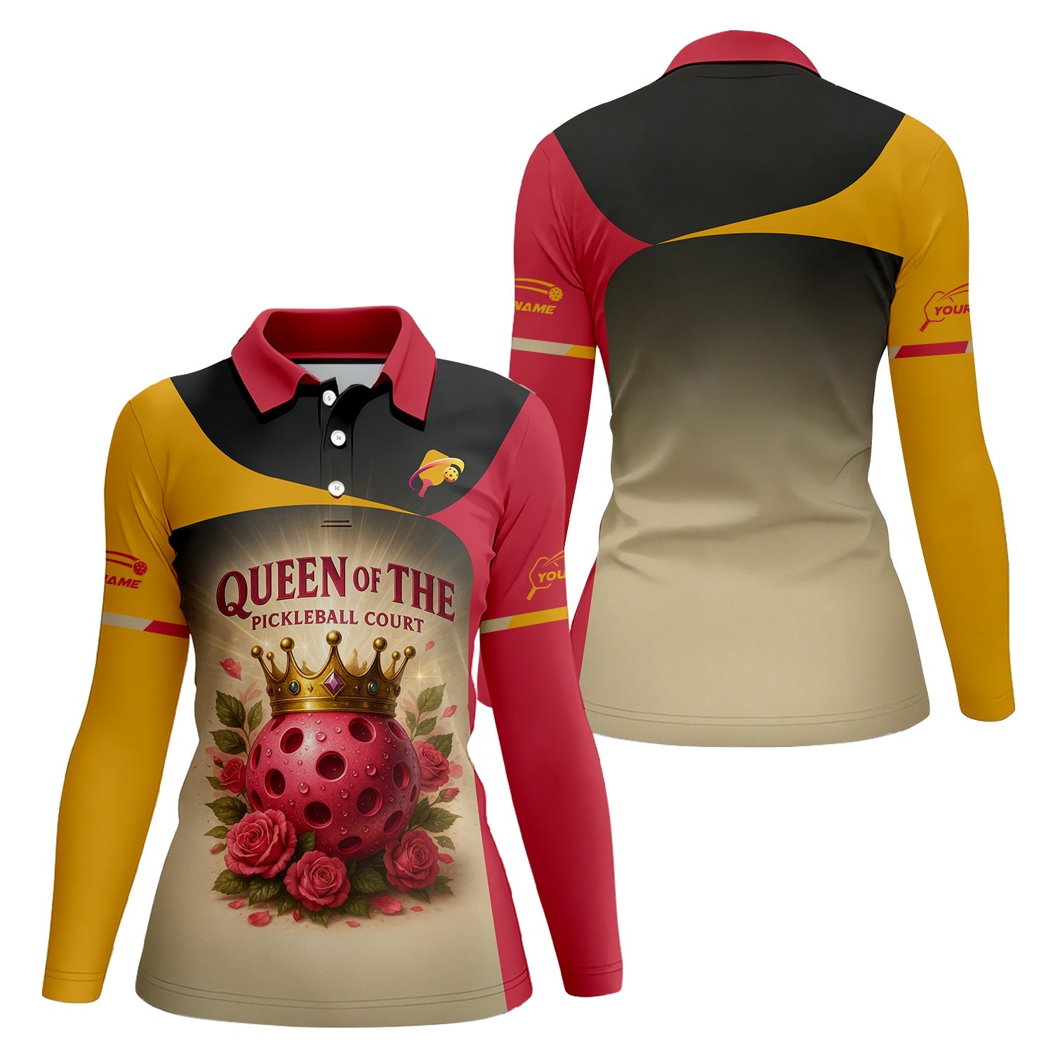 Custom Name Women's Funny Pickleball Polos, Queen Of The Pickleball Court Shirt, Funny Pickleball Shirts