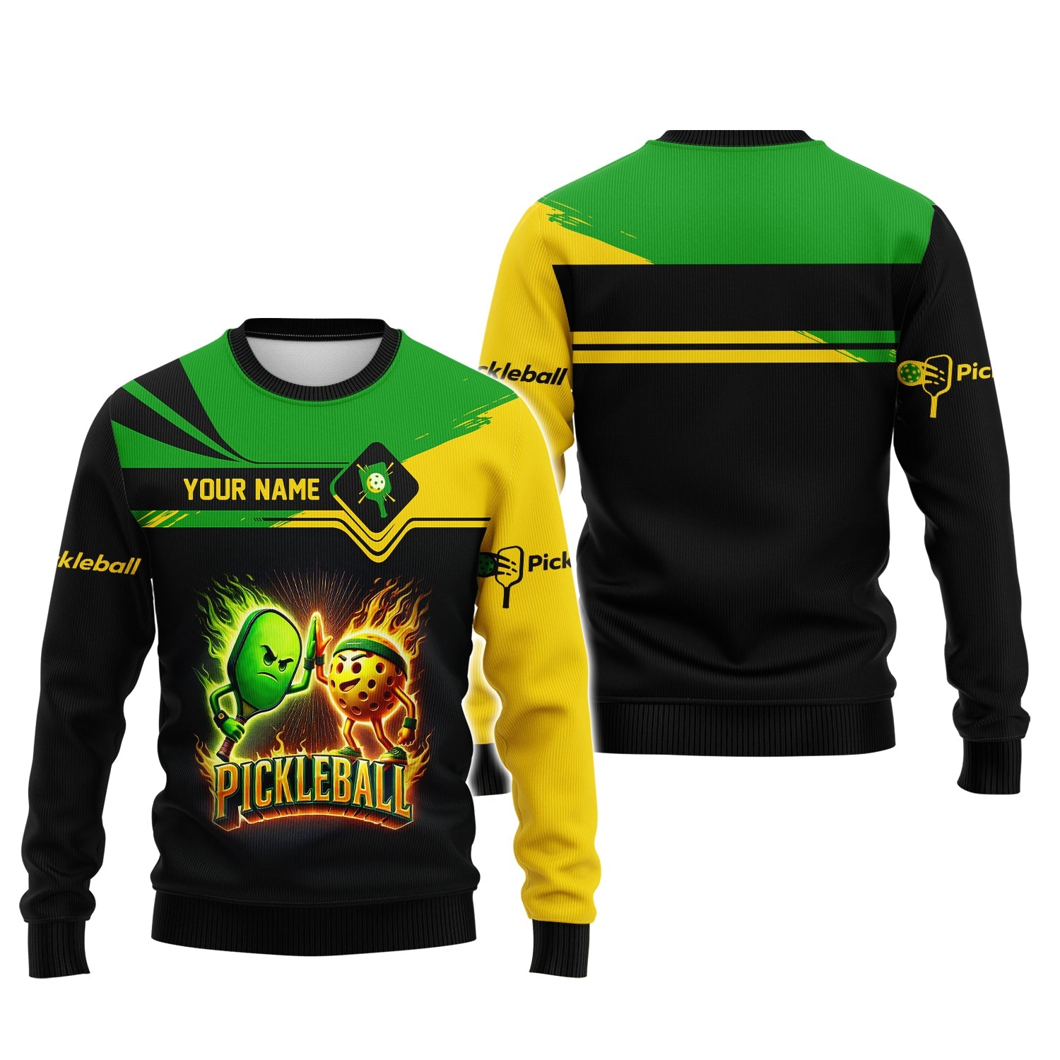 Show off your love for pickleball with our exclusive AOP (All Over Print) T-Shirts, Polo Shirts, Sweatshirts, and Hoodies – fully customizable with your name, team name, or player number. Whether you're on the court or cheering from the sidelines, these stylish and comfortable pieces will keep you looking sharp and feeling great!