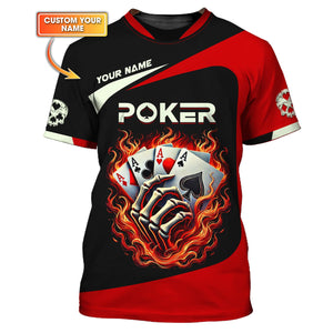 Custom Poker Four Of A Kind Aces On Fire T-Shirt, Poker Shirts, Gift For Poker Players