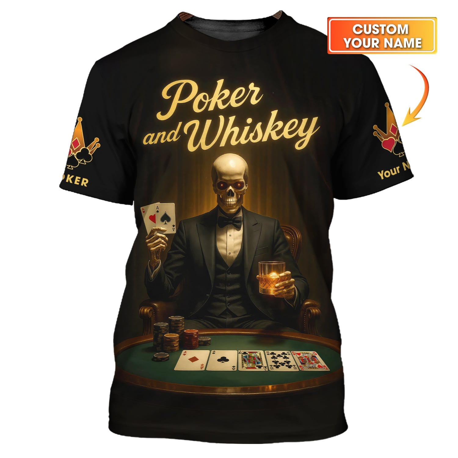 Custom Poker Shirt Skeleton Tuxedo Whiskey Night Tee Gift for Men, Gifts Poker Team Player