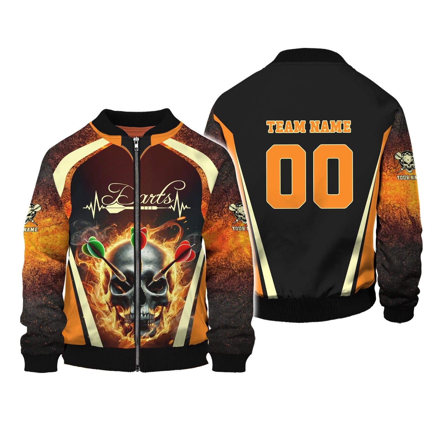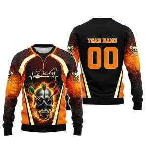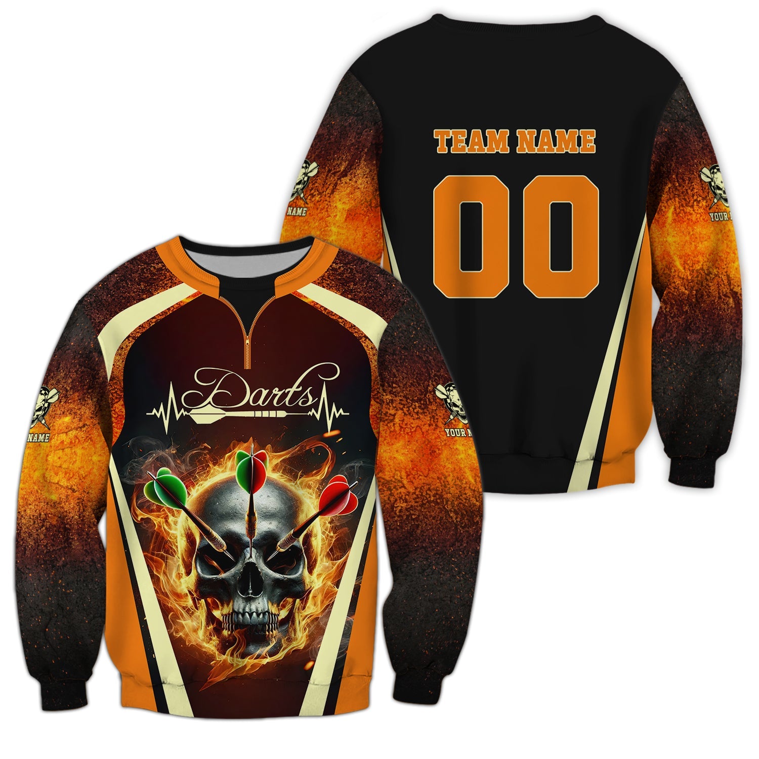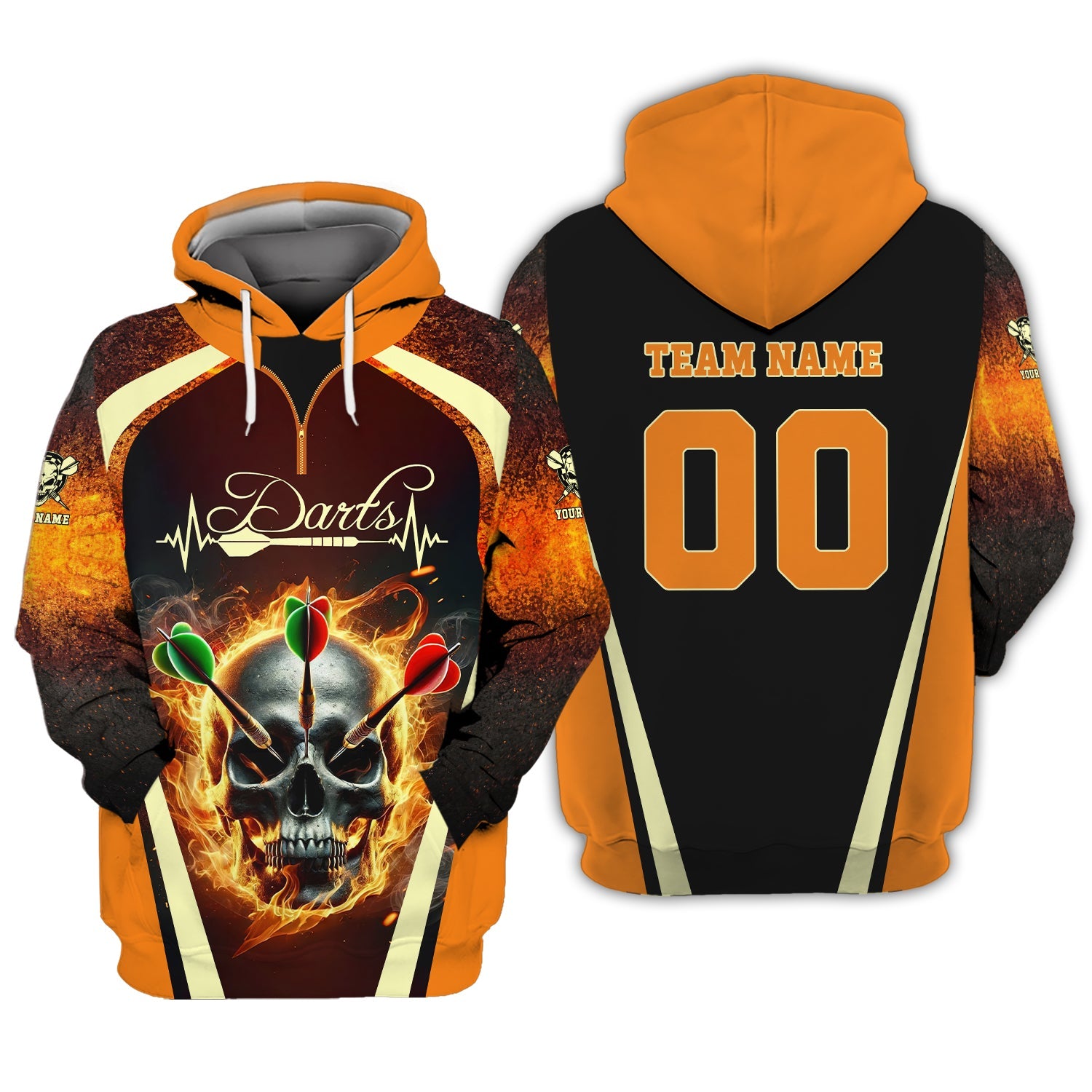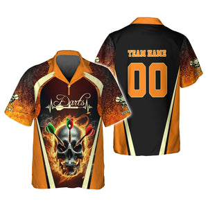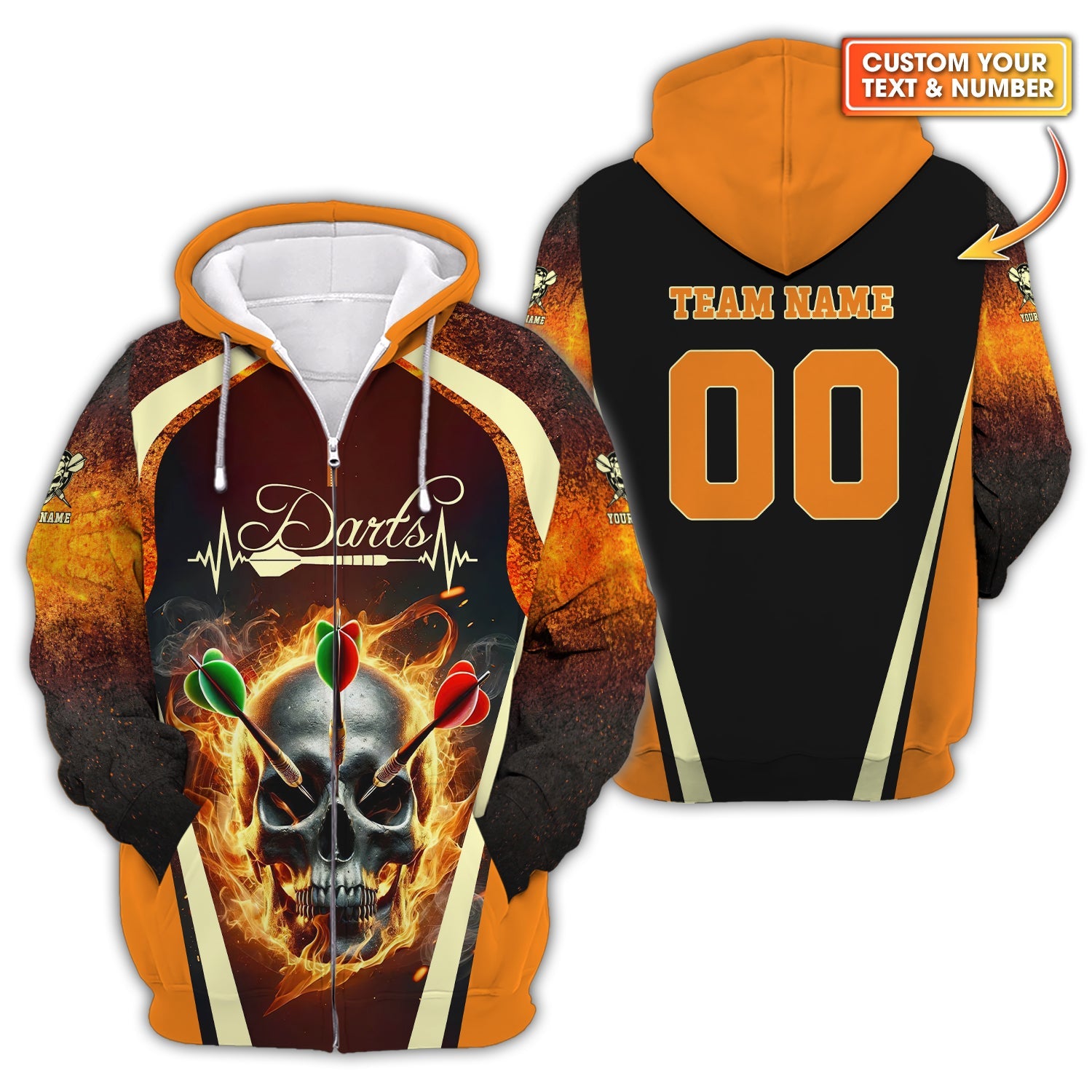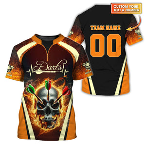Custom Skulls With Fire Design Darts T Shirt, Gift For Darts Lovers