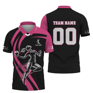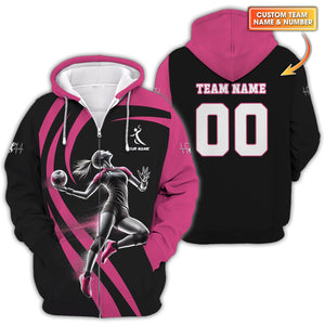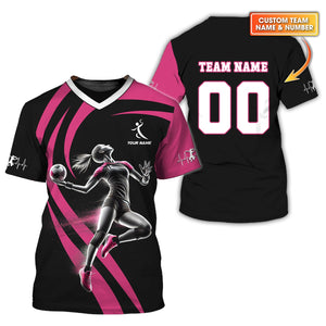 Custom Vibrant Pink Curved Lines T-Shirt, Shirts For Handball Players, Gift For Handball Fan