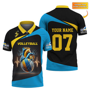 Custom Volleyball Shirt – Blue Heartbeat Design – Personalized Jersey with Name and Number