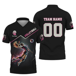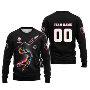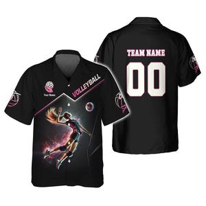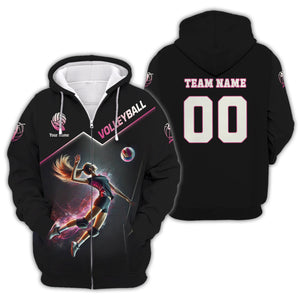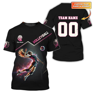 Custom Volleyball T-Shirt – Female Athlete Spiking with Fiery Light Streaks, Volleyball Jersey, Volleyball Gift