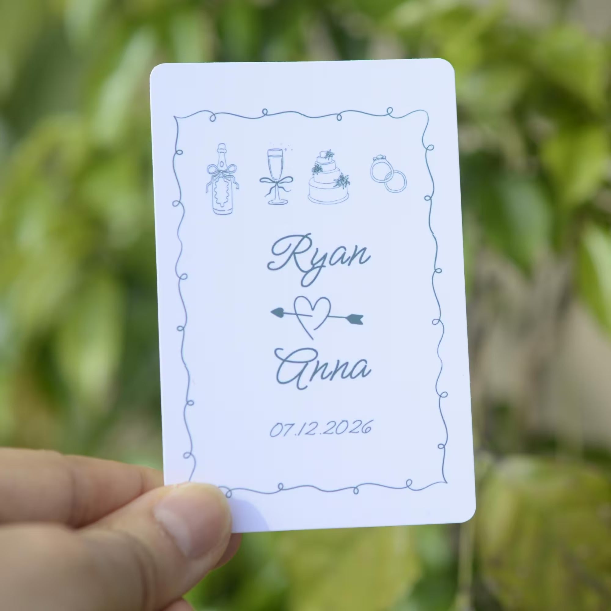 Celebrate your special day with our custom playing cards, the perfect blend of elegance and interactivity.