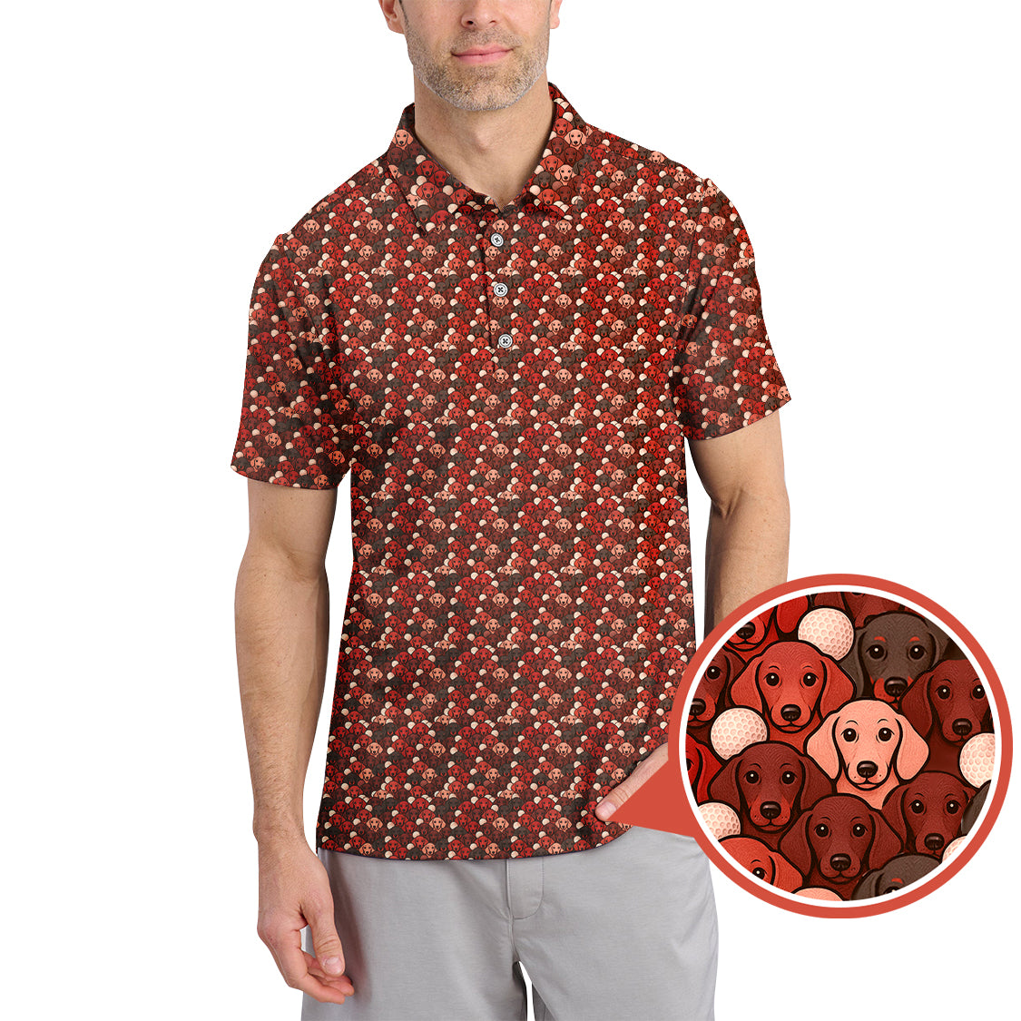 Dachshund Dog Pattern Golf Shirt With Red Color, Golf Gift For Dog Lover, Funny Dachshund Golf Shirt For Golfers