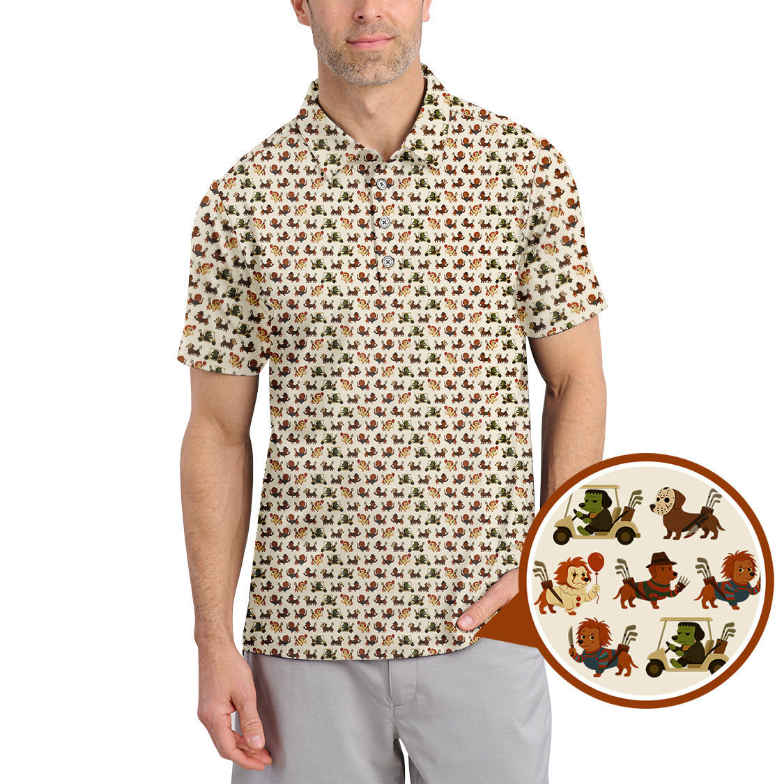 Dachshund Golf Shirt, Pattern Golf Shirt, Halloween Golf Shirt For Men, Funny Golf Shirt For Golfer