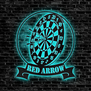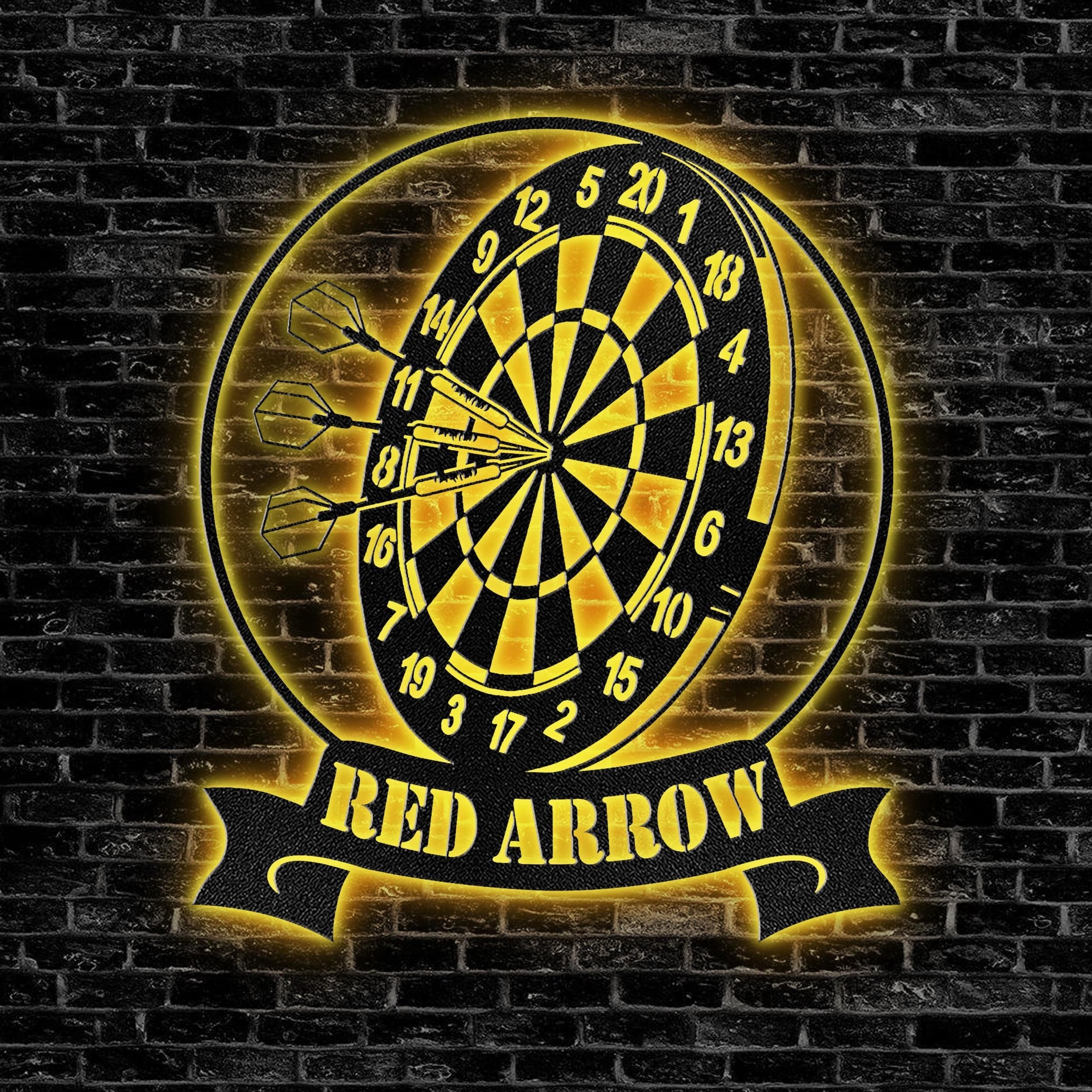 Dartboard Metal Sign – Personalized LED Wall Light for Game Room or Bar Decor