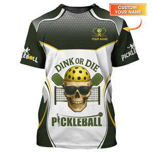 DINK OR DIE Pickleball Shirt – Custom Name Skull Design for Hardcore Players