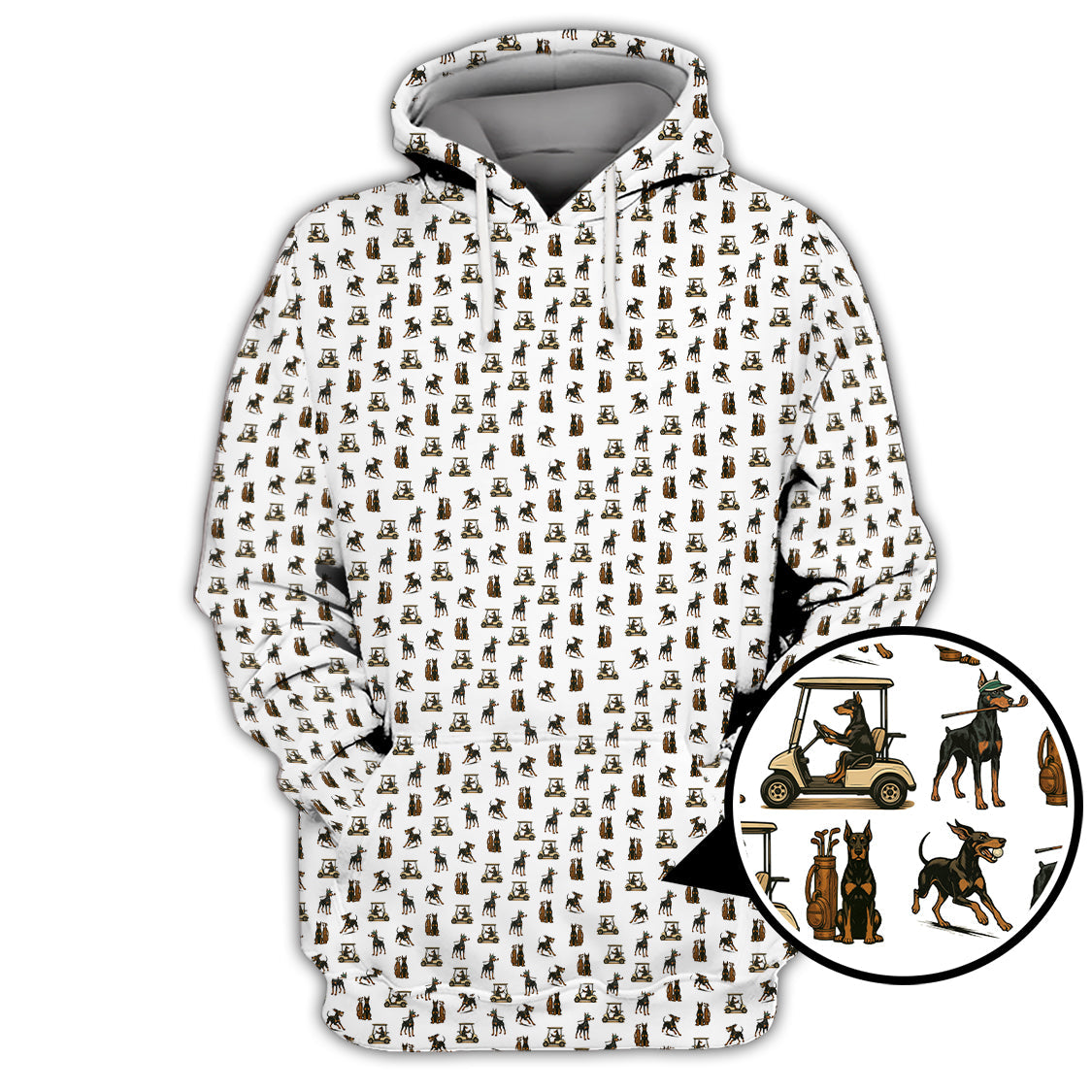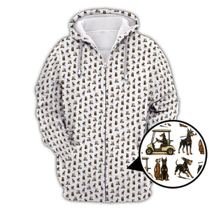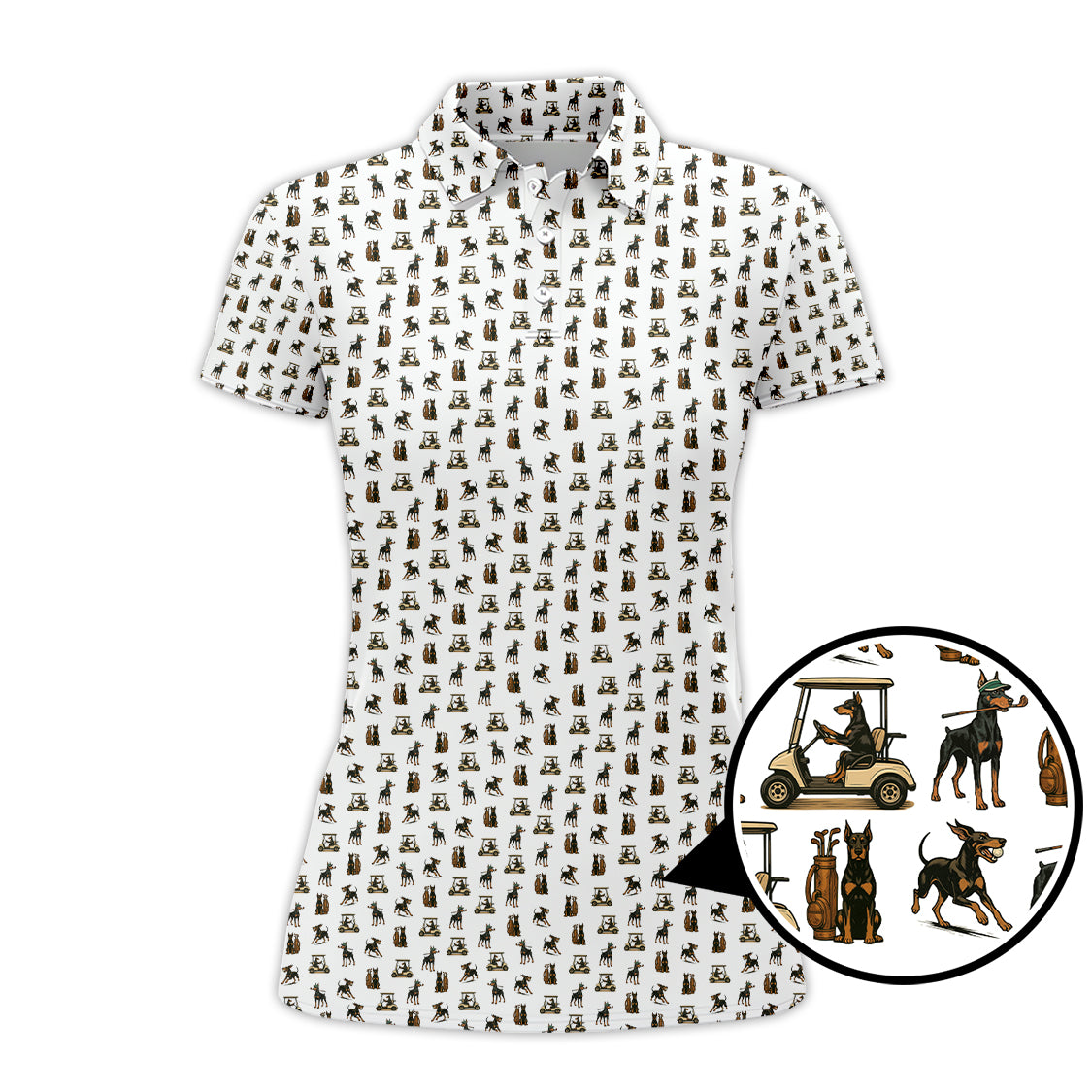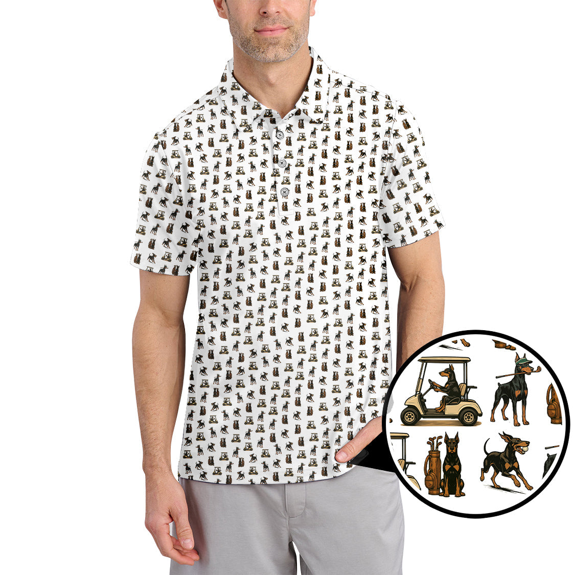 Doberman Pattern Golf Polos, Dog Golf Shirt For Golfers, Crazy Golf Shirts