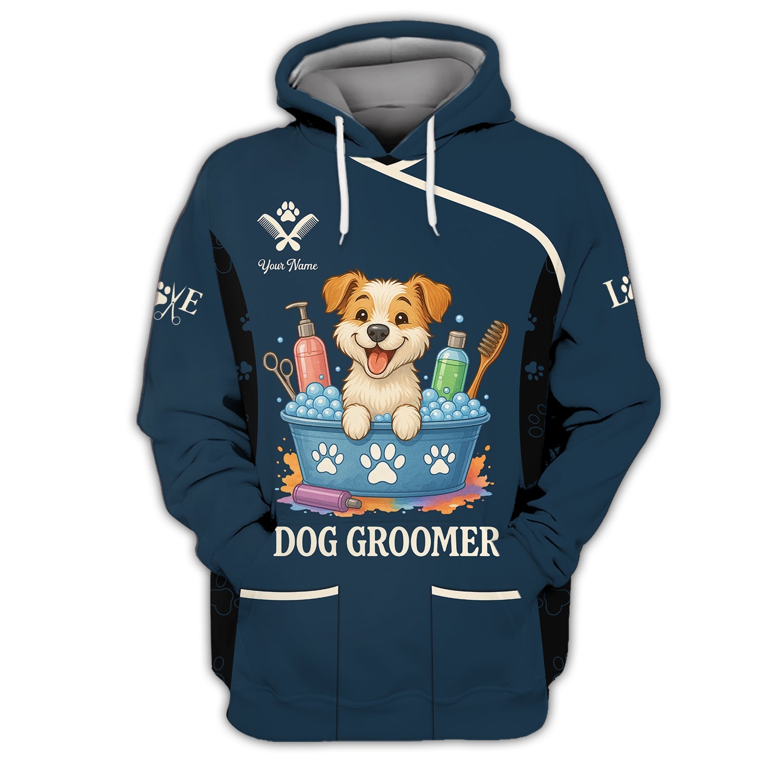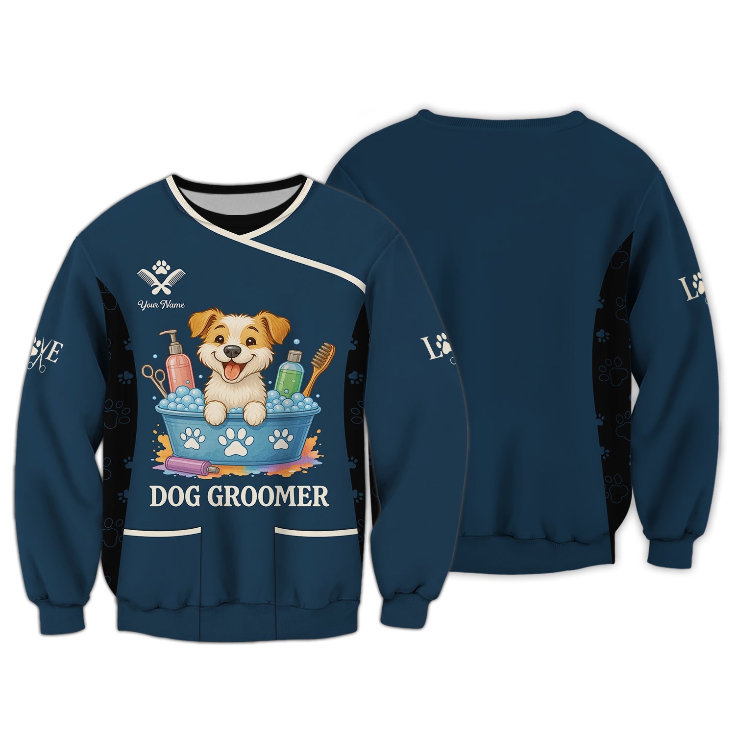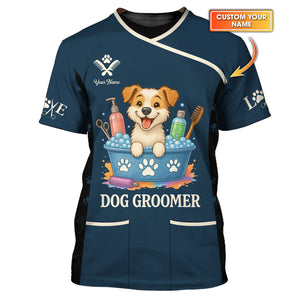 Dog Groomer Uniform, Custom Name Dog Grooming Shirt For Pet Salon, Cute Groomer Shirts For Animal Lovers