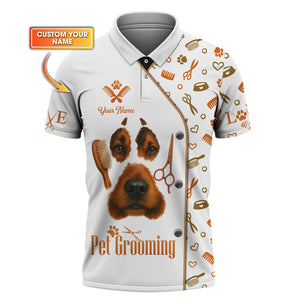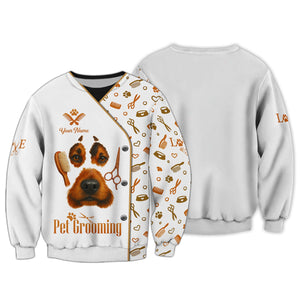 Dog Groomer Uniform With Custom Name, Pet Grooming Shirt For Pet Lovers
