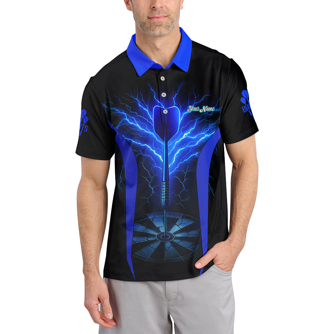 Electric Blue Skeleton Darts Jersey, Custom Name Darts Shirt, Dart Shirts For Men's