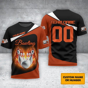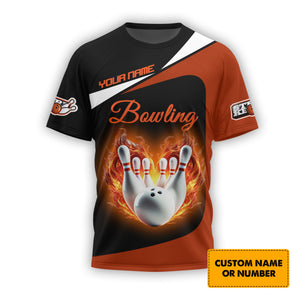 Turn heads on the lanes with this personalized bowling T-shirt featuring a dynamic flaming pins design! Perfect for tournaments, leagues, or casual games, this lightweight and breathable sportswear offers unmatched comfort and style. 🎳🔥 Add your name or team logo for a professional and standout look. A great gift for bowlers to elevate their game and style!