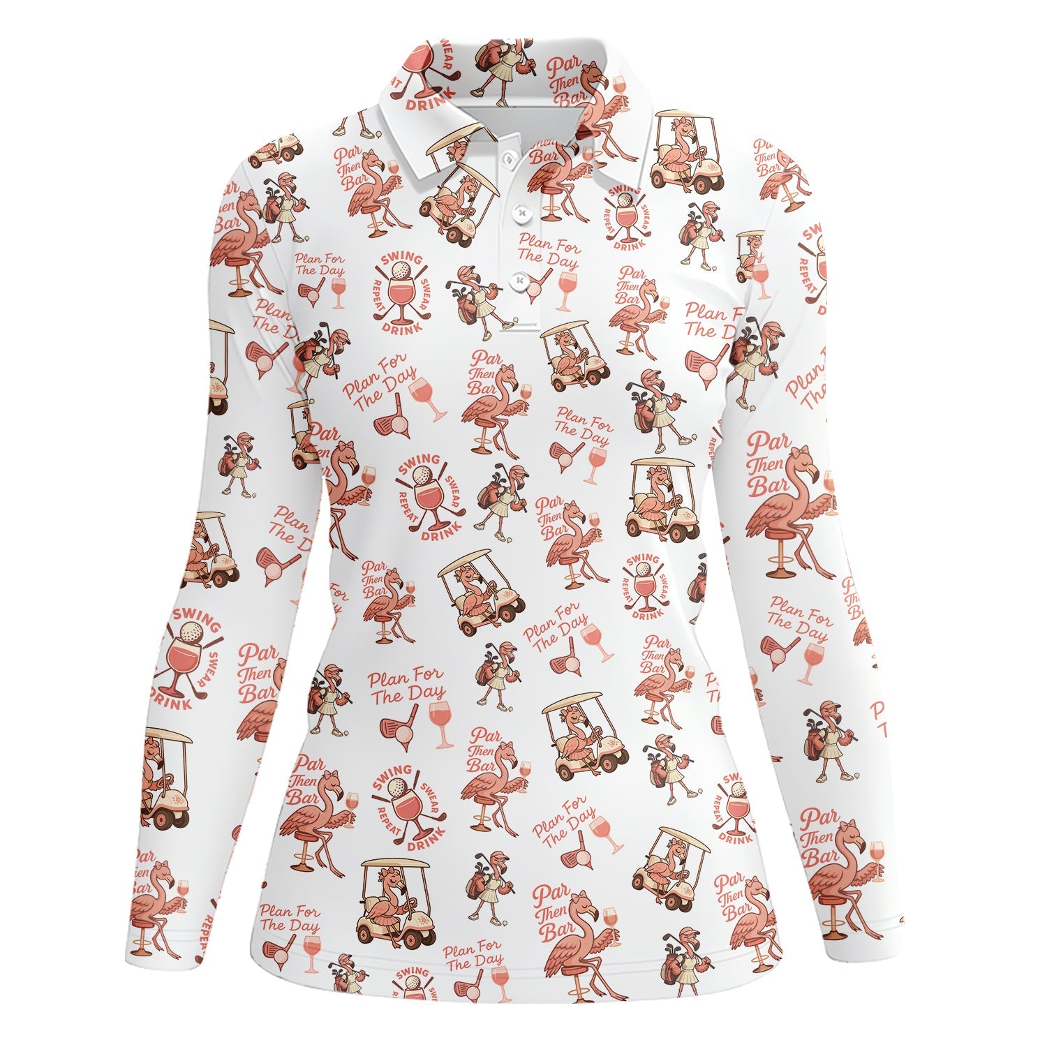 Flamingo Golf Shirt For Golfers, Funny Womens Golf Polos, Pattern Ladies Golf Shirt