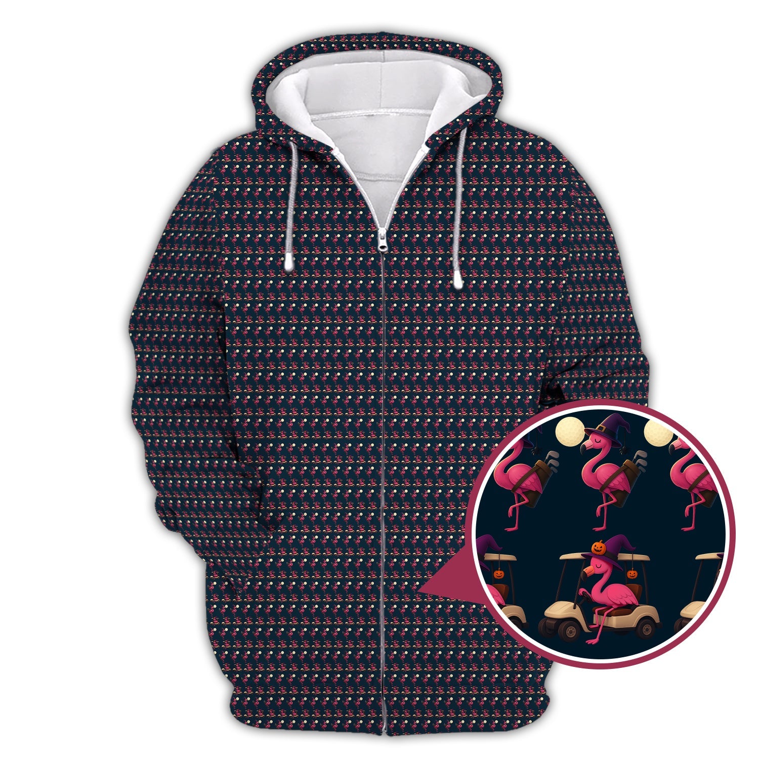 Flamingo Golf Shirt, Halloween Golf Shirt, Funny Pattern Golf Shirt For Golfer