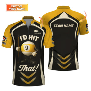 Funny Billiard Shirt Custom Name – I’d Hit That 9 Ball – Black Yellow Pool Player Personalized Tee Gift