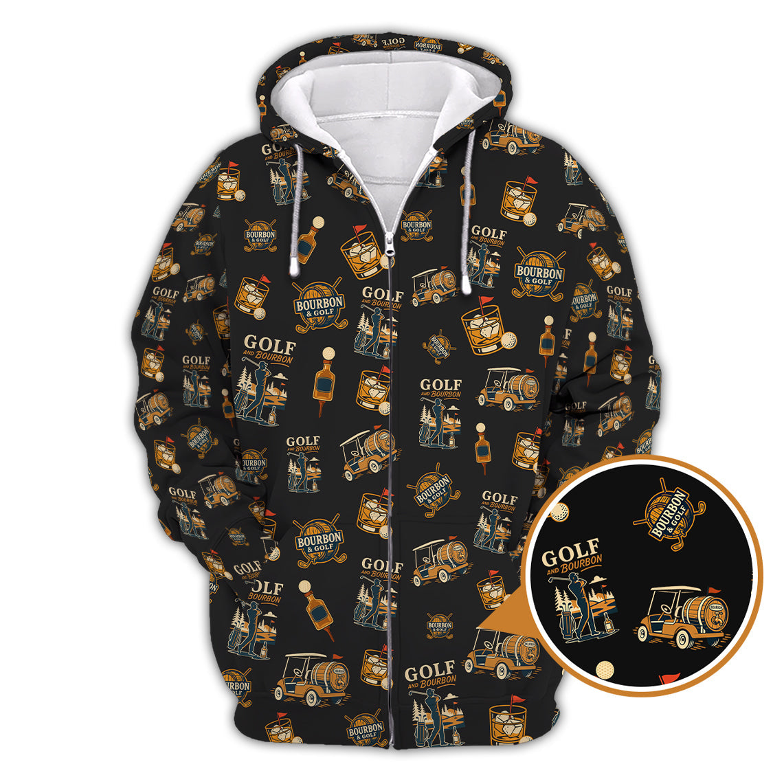 Funny Bourbon Pattern Polos, Golf and Bourbon Shirt for Men, Gift For Golfers