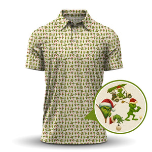Funny Christmas Golf Shirt, Pattern Golf Shirt, Grinch Golf Shirt For Men