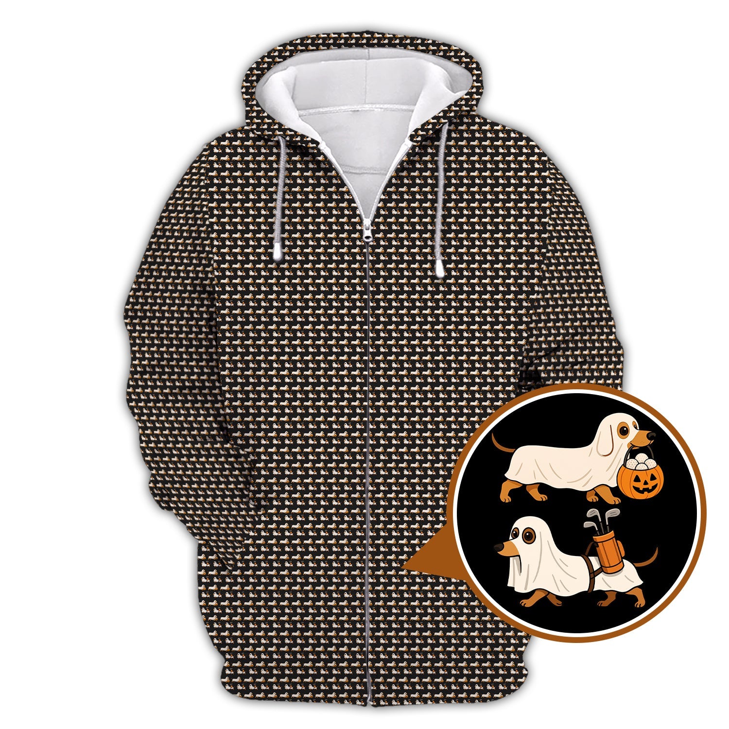 Funny Dachshund Golf Shirt For Men, Pattern Golf Shirt, Halloween Golf Shirt For Golfer
