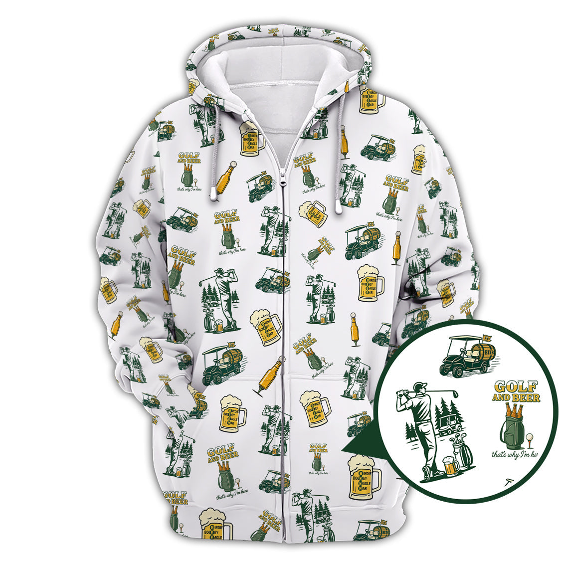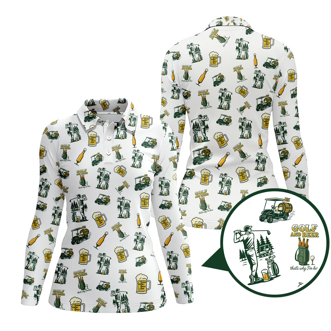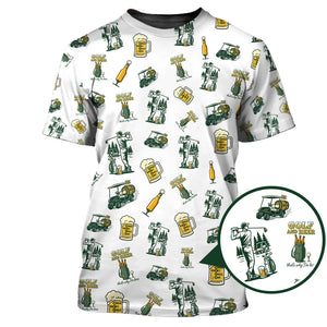 Funny Golf Polos For Men, Golf And Beer Pattern Shirt, Crazy Golf Shirts For Golfers