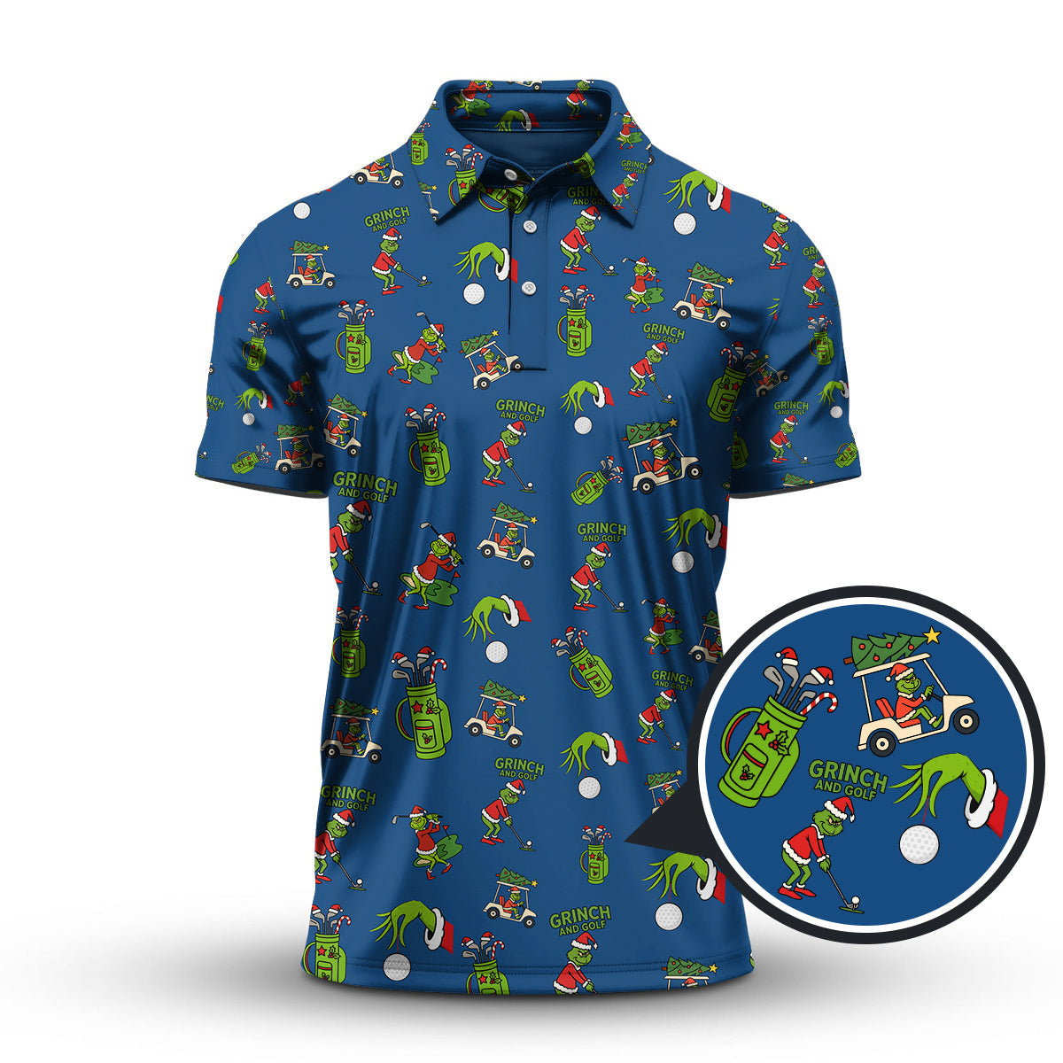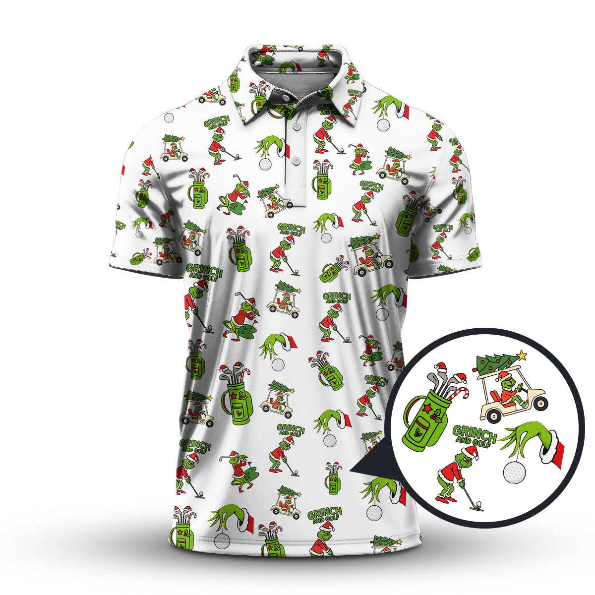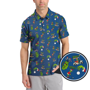 Funny Grinch Golf Shirt For Christmas Golf Lovers, Pattern Golf Shirt For Men, Crazy Golf Shirt For Golfer
