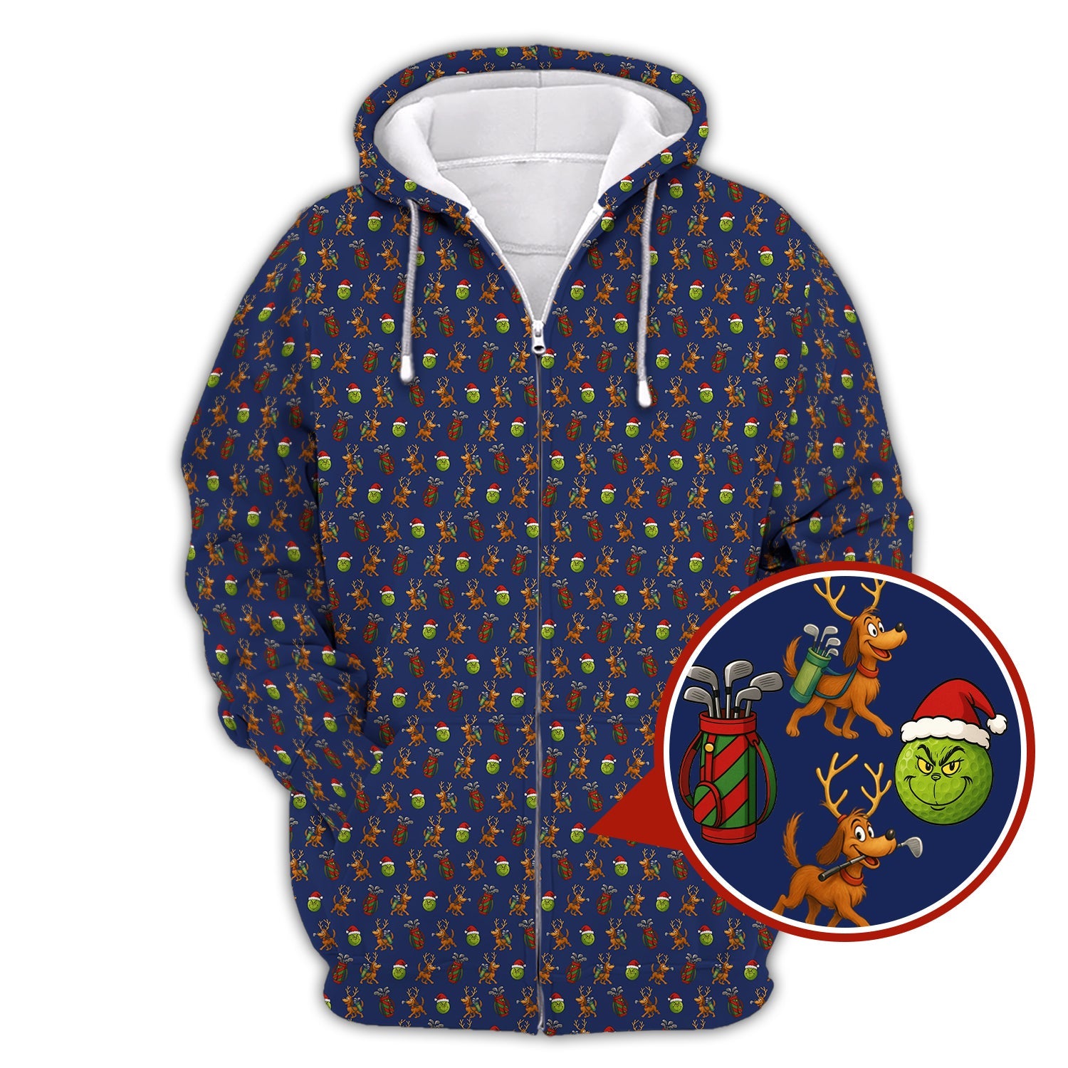 Funny Grinch Golf Shirt, Pattern Golf Shirt For Men, Christmas Golf Shirt For Golfer
