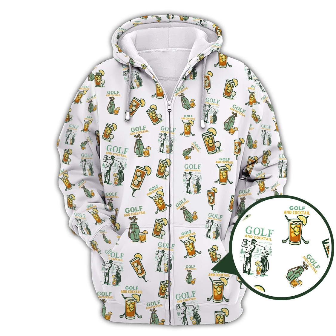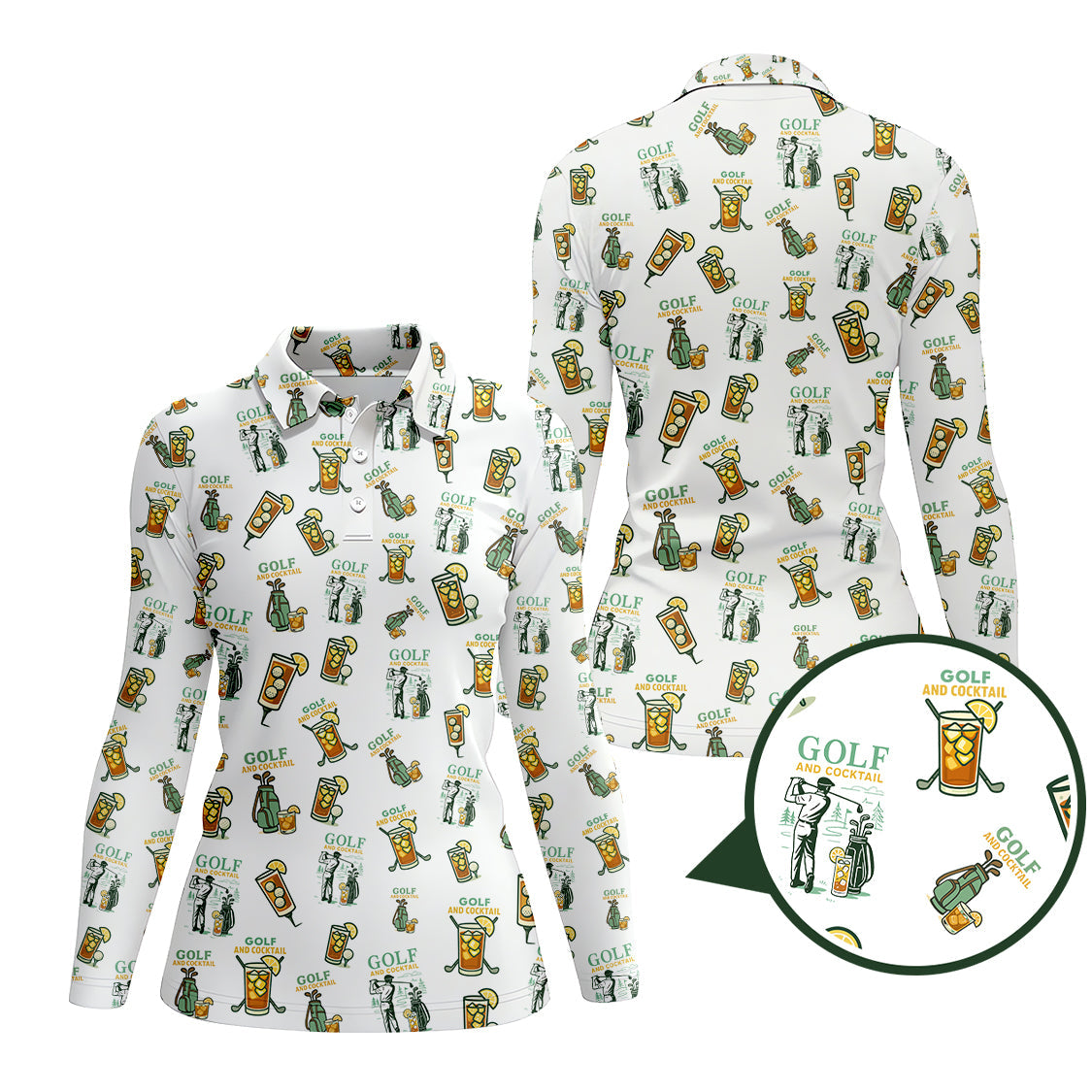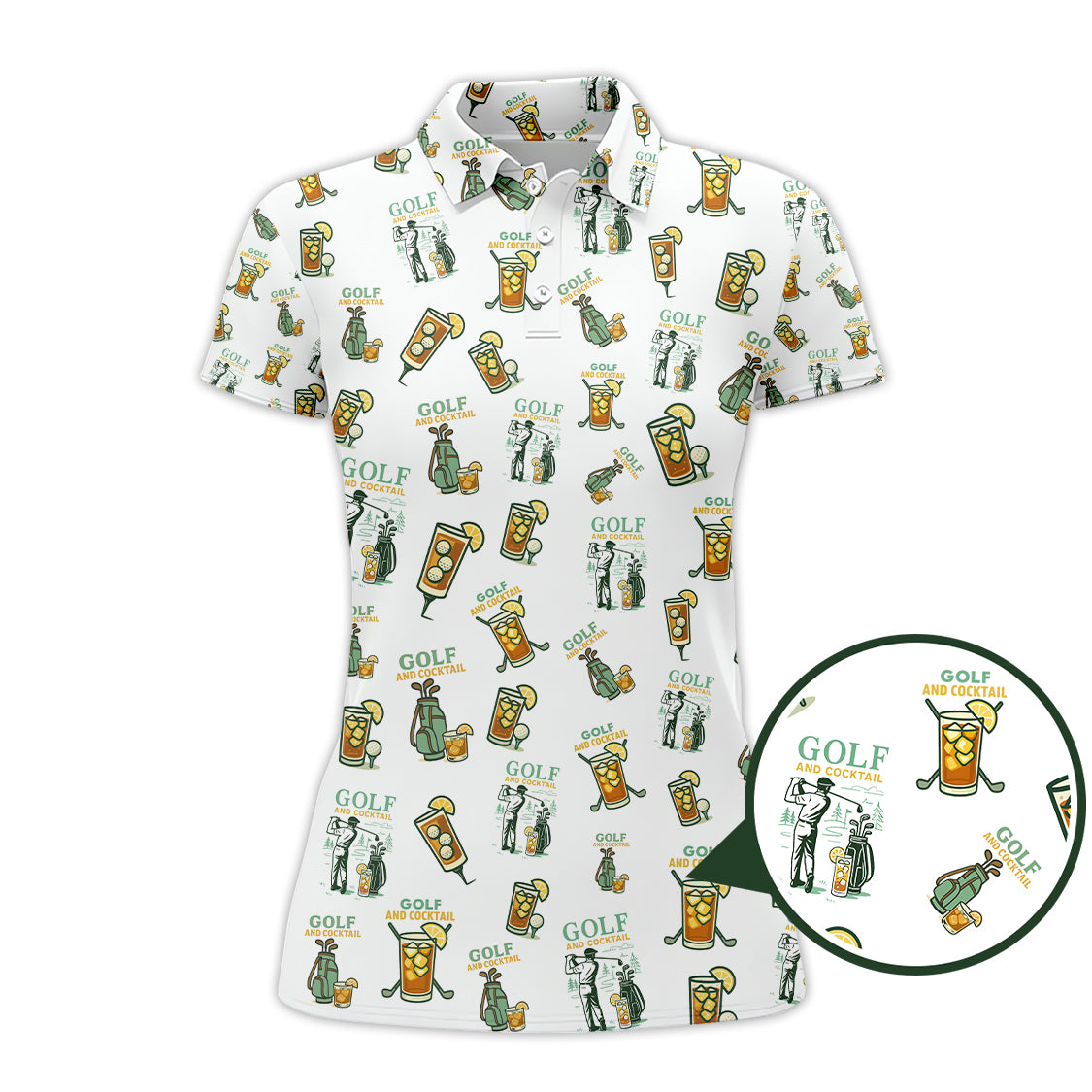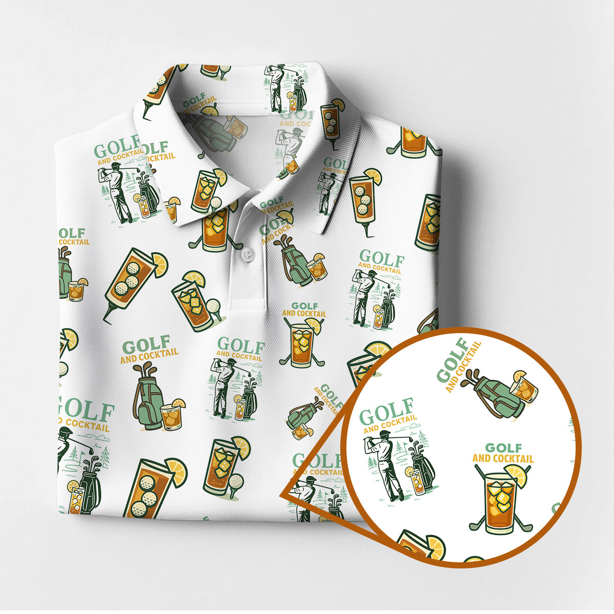 Funny Pattern Cocktail Golf Polos, Men Golf Shirt, Golf Gift For Golfers