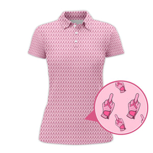 Funny Pattern Golf Shirt, Pink Golf Shirt For Women, Breast Cancer Golf Shirt For Golfer