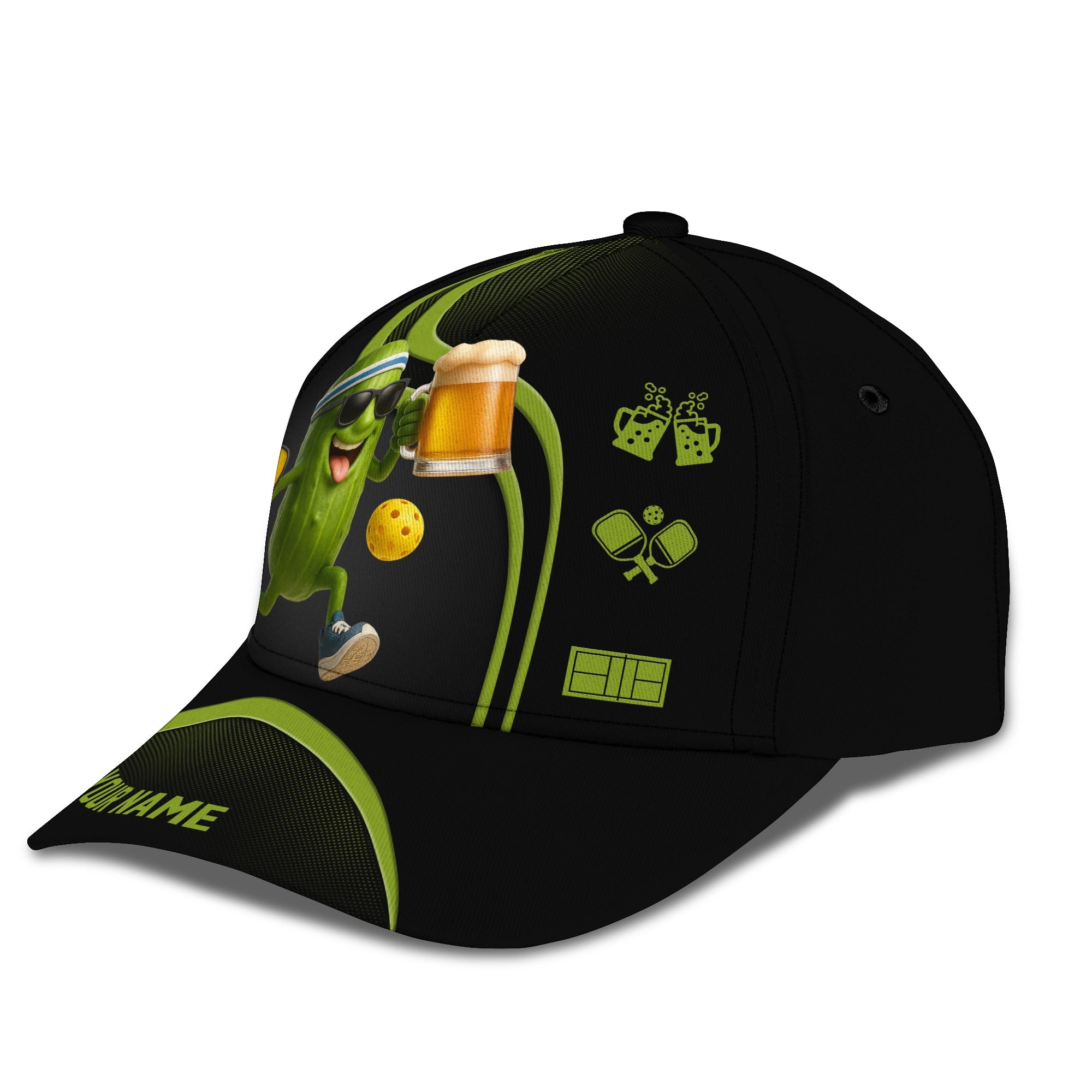 Funny Pickleball Beer Hat, Custom Name Pickleball Cap For Men, Cool Gift For Pickleball Lovers And Beer