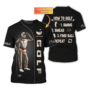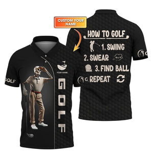 Funny Skeleton Golf Shirt – How to Golf Steps – Custom Name Tee for Players & Beer League