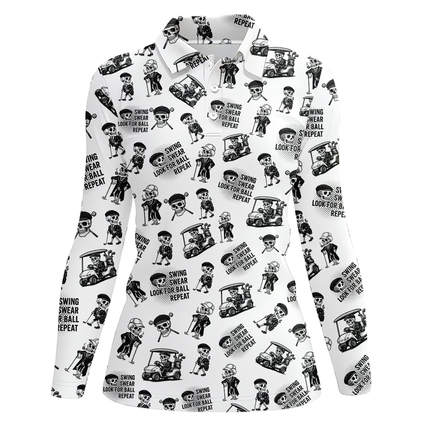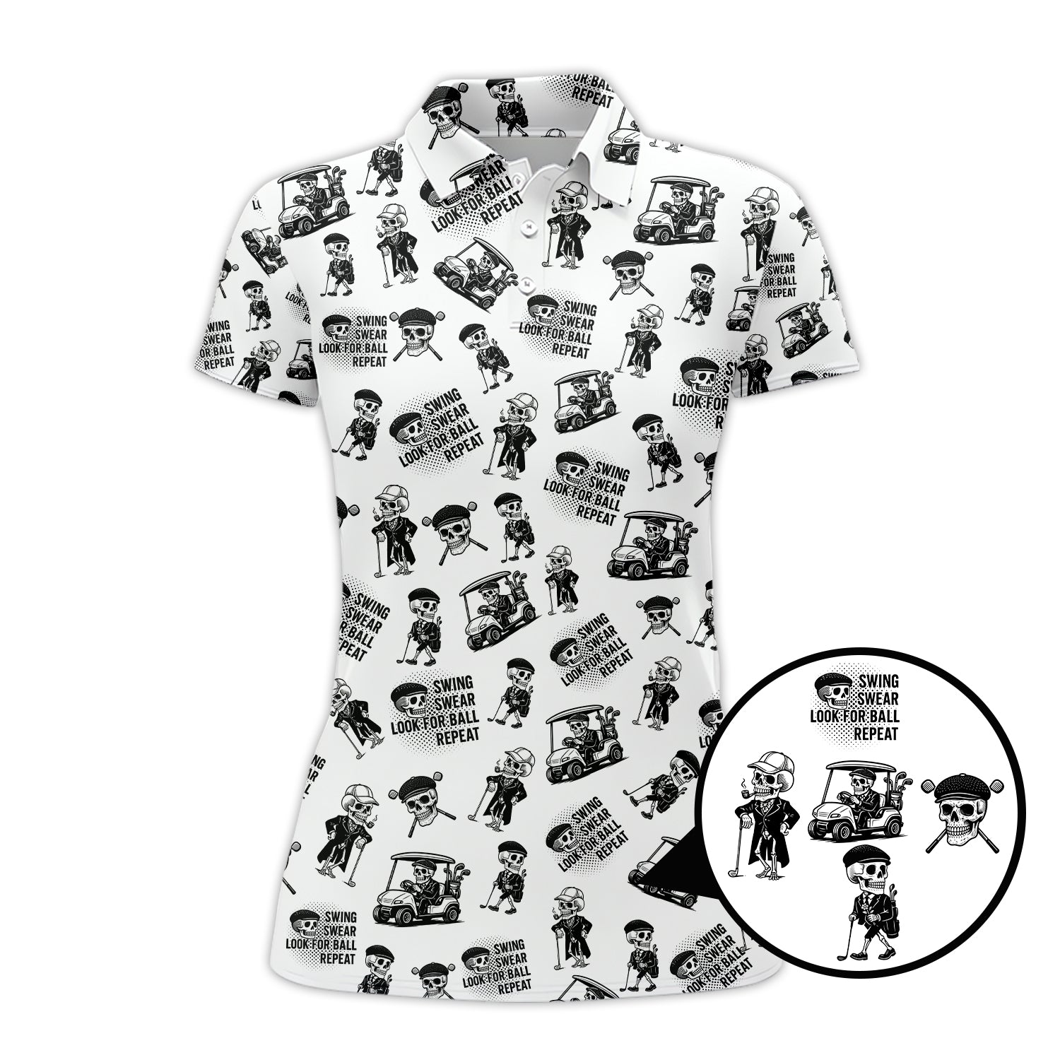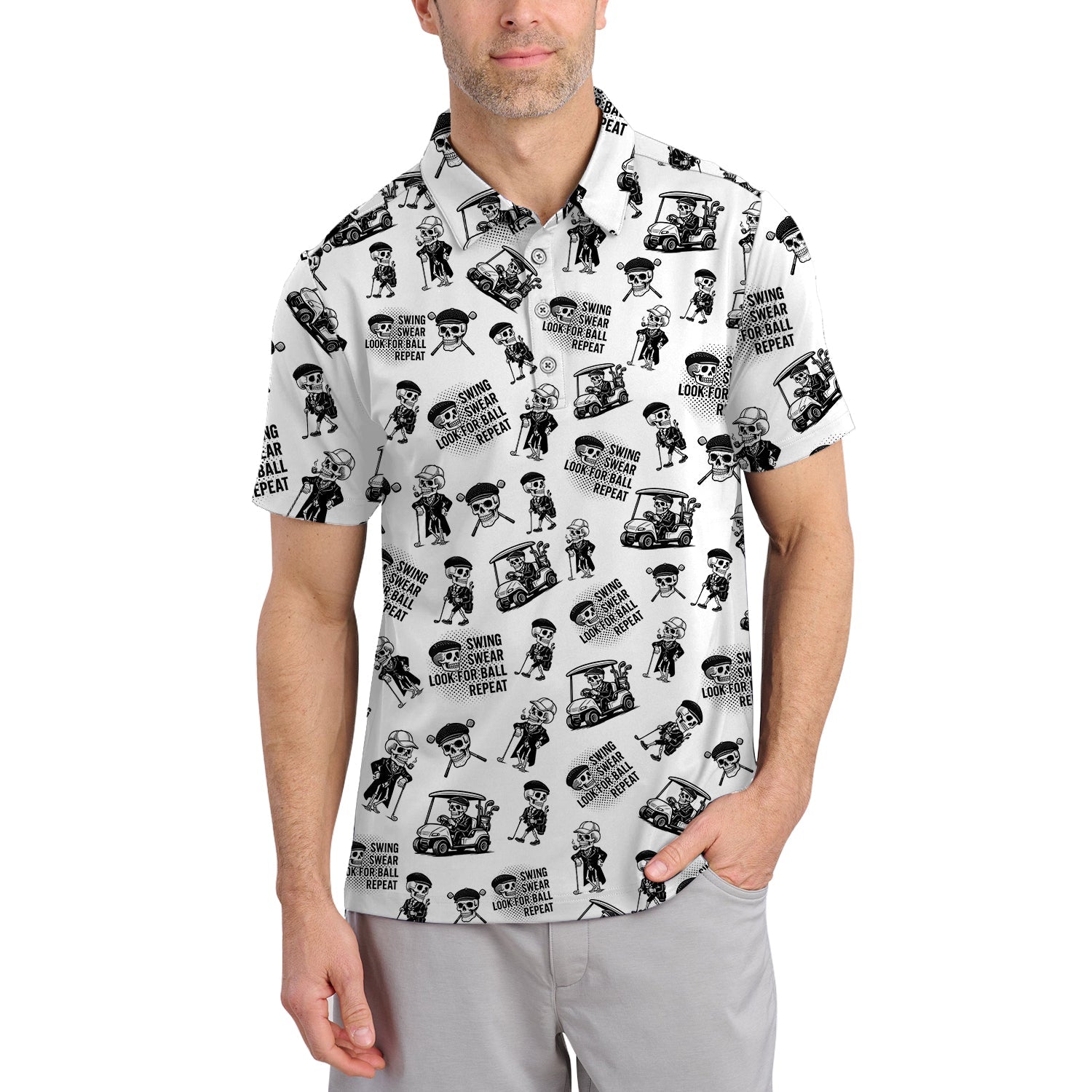 Funny Skull Golf Shirt For Men, Skeleton Golf Pattern Polos, Crazy Golf Shirts For Golfers