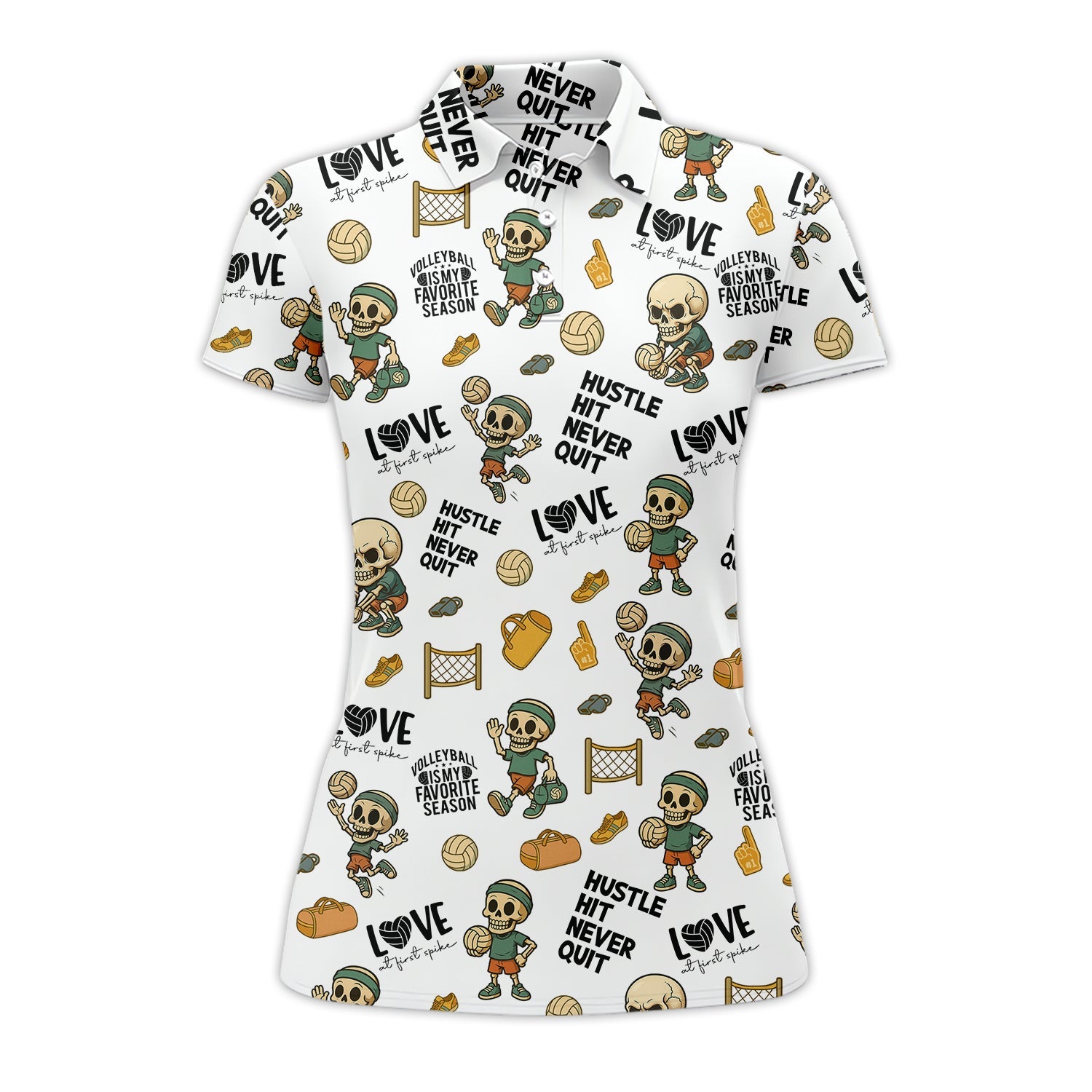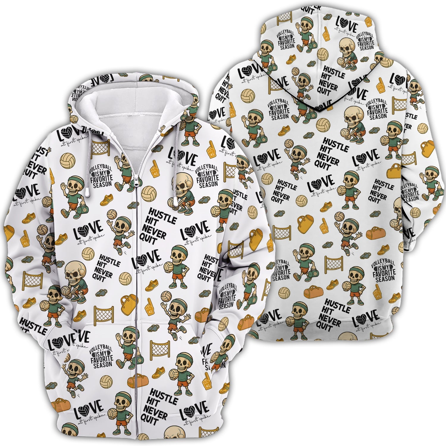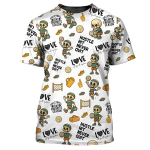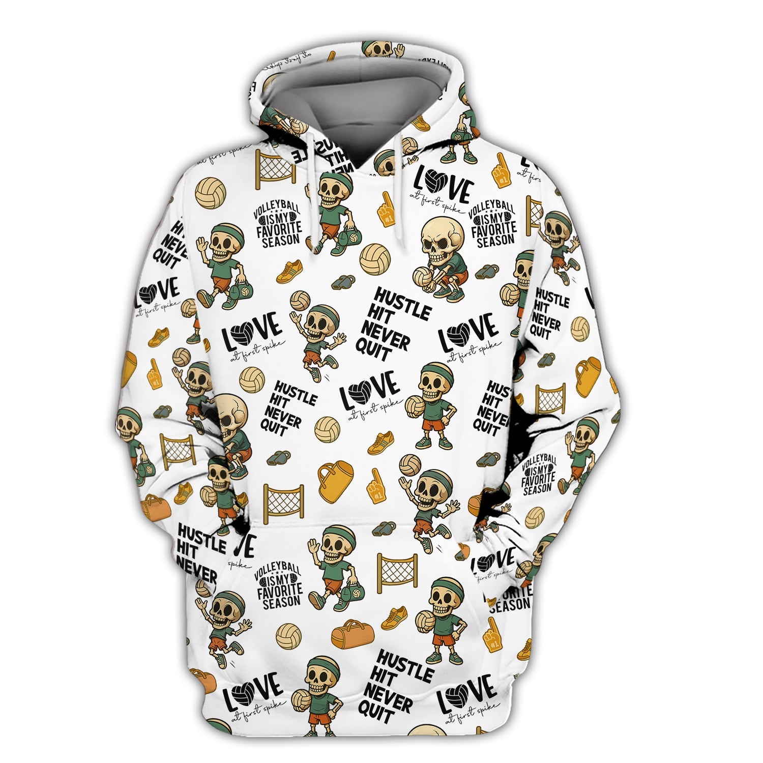 Funny Volleyball Skeleton Jersey Shirt– Hustle Hit Never Quit Tee – Volleyball Is My Favorite Season Sports Jersey