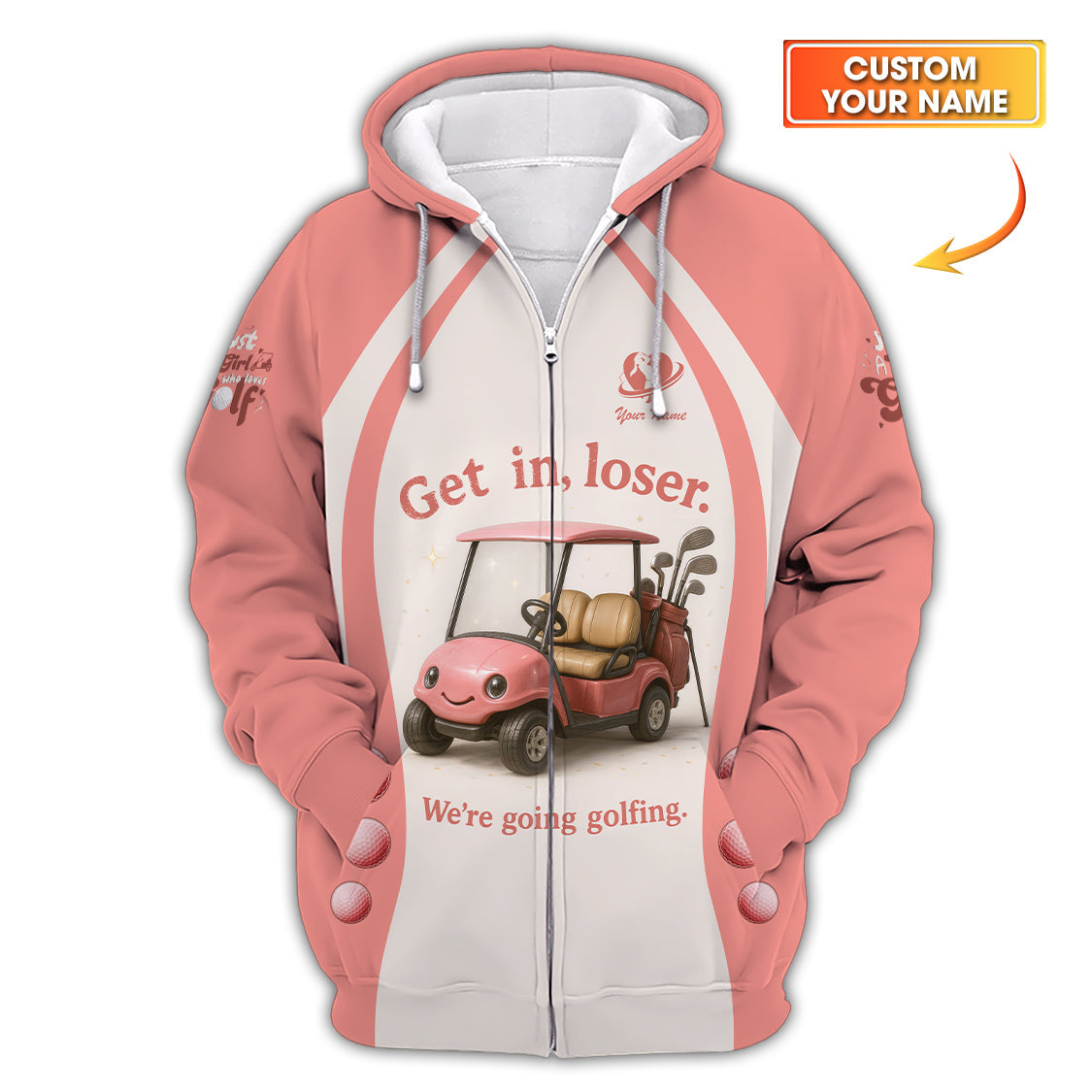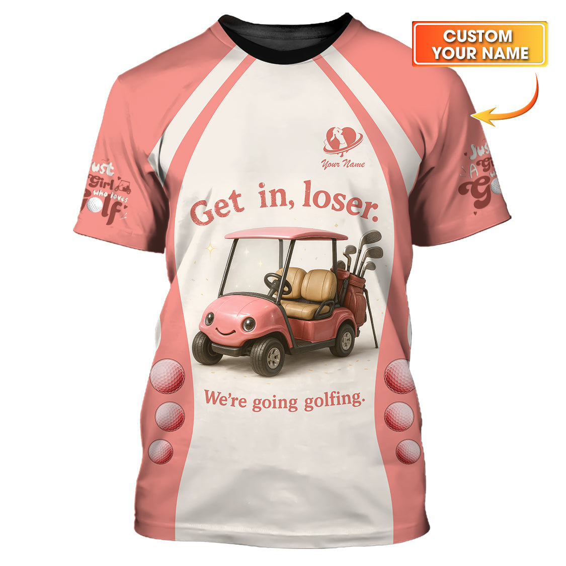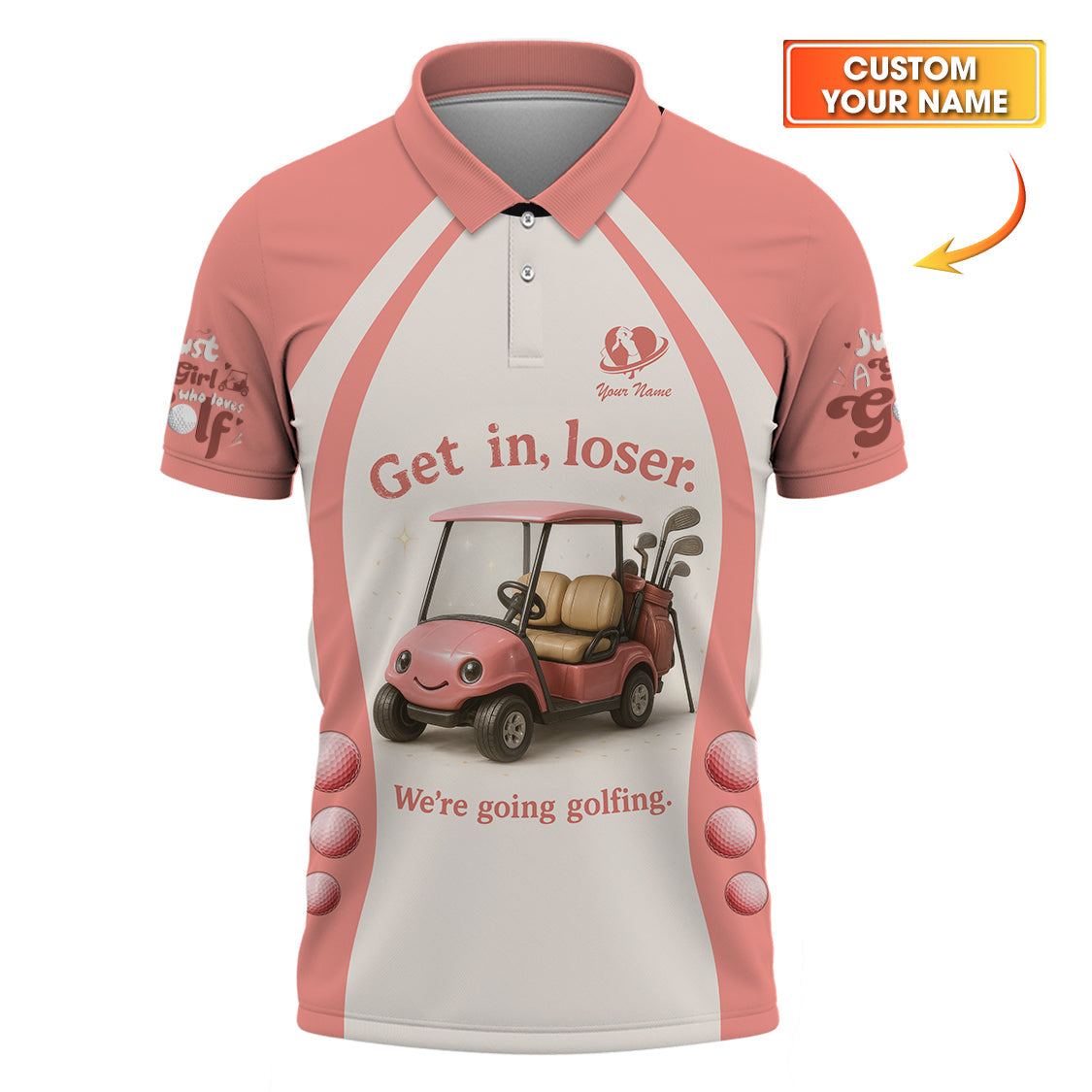 Get In Loser We’re Going Golfing Ladies Golf Shirt, Funny Golf Shirt, Custom Name Golf Polos