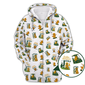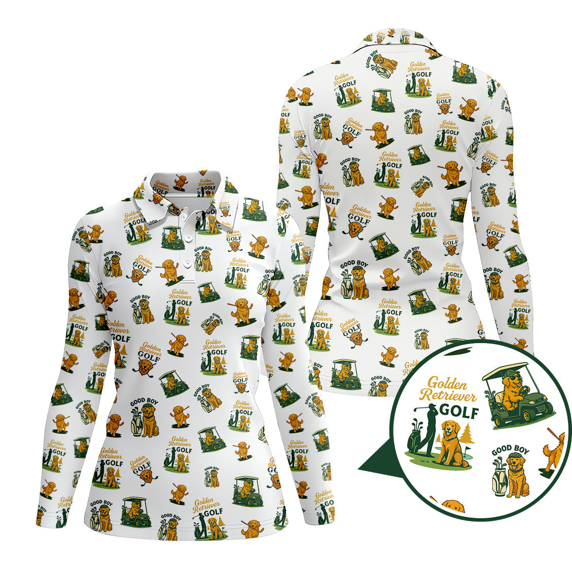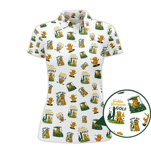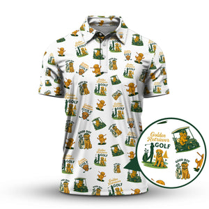 Golden Retriever Pattern Golf Shirt For Men's, Crazy Golf Polos, Funny Golf Shirts For Golfers